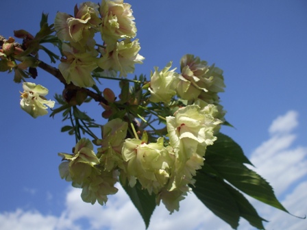 掲載せずに捨ててしまおうと思いましたが折角なので残しておくことにしました。4月22日の中日新聞に載った御衣黄桜の記事を見て近くなので行ってみることにしました。行ったのは4月24日。やはり新聞を見たのかカメラを持った人が何人か見えました。花の写真を何枚か 樹はまだ大きなものではありませんでした。八重桜と並んで咲いていたので、ピンクの八重桜の方が目立ちましたね。しかも緑の葉の中の薄緑の花なので、拡大しないと花の存在が認識できません。真ん中に2本御衣黄があるのですが分かりませんね 八重桜も撮ってきました こう言うのは新聞の記事でも見ないと、変わった色の桜だなぁ~程度で終わってしまいますねぇ。前にTVで見たのですが桜には80種類くらいあるそうですね。でも国内に植えられている桜の80%がソメイヨシノだそうです。