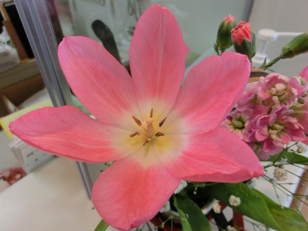 今日の透析除水は3.1kg。月曜日なので2.6kg引いて貰いました。2時間目で血圧90でアラーム・・再測定で108・・今後低い値が出たときはこの手ですかね。帰りに事務所窓口のこの花朝透析室に入るときには普通につぼ型だったチューリップが部屋が暖かいからか半日でこんなに開いてしまいました。普通このくらい開くと花びらが落ちてしまうのに綺麗に残ったのは初めて見た気がします。この写真だけではチューリップとは思えませんね。家に戻ったら投資信託の運用実績一覧が届いていたが・・昨年末から税金が増えています。あまり報道された記憶は有りませんが民主党が最後に値上げしてくれたのでしょうかね。