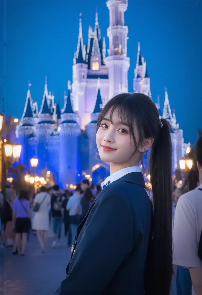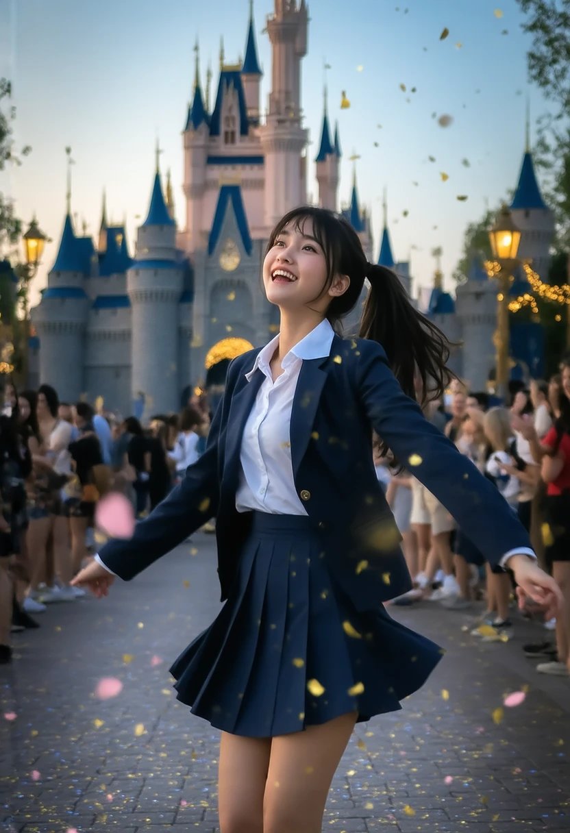 教師:じゃあ、俺と一緒に見よう。一人で迷子になったら困るからな。シンデレラ城好きなの?
