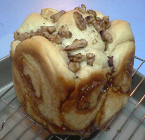 焼きあがりましたー!!メープルくるみパン!!上に乗っかってるのが、くるみ。染み出してるのが、メープルです。我ながら、めちゃめちゃ旨そう ちくしょー、「パン焼いていくね」とかh調子に乗って言っちゃったから、 つまみ食い出来ないじゃん。。食べたいなぁ・・メープルパンは、最初はメープルシロップを生地に混ぜて作ってたんだけど、いまいちメープルが堪能出来なかったのですよ。ほんのりふわっと香るメープル、じゃ、物足りないのだ。ところがどっこい、天然メープルシロップ粒つぶ顆粒タイプを発見してからは、食べたかったメープルを折り込んだメープルパンが!!そうそう、生地から染み出すメープルパンが食べたかったのだ!!ブログ書いてる今でも、横からメープルパンの甘ったるい匂いが・・・たまらん。。作り方は、私がMKホームベーカリーを買うきっかけとなった、上田まり子さんの卵・乳製品ゼロのホームベーカリーレシピの「マロンクリーム渦巻きパン」のマロンクリームをメープルシロップ顆粒に変えただけのとても簡単なものです。我ながら、ホントにうまそう。。せっかく作ったのに、食べれないのがせつない。。。