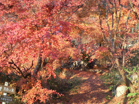 ソバは何処で食べようかなぁ??つなぎ無しのソバ粉100%のおソバを食べてみたいのだぁ。袋田の滝付近に手打ちソバ屋さん、たくさんあったからそこまで戻って探そうかなぁ・・とか思ってたのだけど、森林の温泉(もりのいでゆ)で、観光客のおばさんが他の女性の方に、この辺でお勧めのソバ屋を聞いてました。おっと、耳だんぼ。 そこで名前が出たのが『月待の滝 もみじ苑』のおソバ屋さんでした。その方はひたちなかの方で、よく袋田の滝に来られるみたい。そして来ると必ず月待の滝のもみじ苑でおソバを食べるとの事。知らない方についついあいこもガッツリ質問!!そこのソバはうまいんすか??なぜ、そこのおソバなんすか??『おソバも美味しいけど、お店の風情がとても良いのです。主人も私も大好きなお店です~』と品の良いご婦人。おおー!!有力情報をキャッチ!! 森林の温泉から車で10分くらいで到着。第一駐車場に車を止めて、紅葉遊歩道(だっけ?)を通って・・・ おおおー!!!すげー紅葉!!そこだけ、真っ赤。とてもキレイな紅葉でした。両サイドから枝が伸びたもみじのアーチを抜けて、『月待の滝』へ1分くらいで到着。 まさかここで紅葉を見せてもらえると思ってなかったので、とてもラッキーもし、袋田の滝で紅葉の時期を逃しちゃった方は、『月待の滝』まで足を伸ばされる事お勧めします!! おソバを食べれるという「もみじ苑」は滝のソバ屋さんという和な感じではなく、ログハウスな感じ。寒かったので店内でいただきましたが滝のすぐ側でも、いただけます。 私は十割ソバ(そば粉100%で打ったソバ)1000円を、彼さんはもりそば(もっとも力を入れてるソバとかメニューに書いてたような)750円を注文。十割ソバはもりそばよりも少し色が黒い。せっかくなので十割ソバともりそばを半分ずつ、勝手にハーフ盛りにしてみた。 左の色が濃い方が十割ソバ、右はもりそば。さてさて、食べ比べ。「十割ソバの方がうまい!!」と彼さんは言ってましたが、正直私には違いがわからなかったです。両ソバとも「コシがある」というより、しっかりとした歯ごたえがあり、細かく噛むとさらりとしたほのかな甘味・・・「どちらも美味しかった」てなありふれた感想ですみません・・とてもいい滝&いいお店です~いろんなドラマの撮影にも使われたそうで、「ガラスの仮面」の撮影風景の写真などがありました。撮影の合間の安達由美ちゃん、テレビでは見れないオフショットな感じがよかったです。グルメぴあhttp://g.pia.co.jp/shop/08000349じゃらんhttp://www.jalan.net/kanko/SPT_172463.html