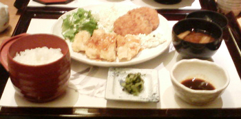 今日は華ちゃんと、凛ちゃんと、3人ランチ。「どこにする?」「どこでもいいよー」まったく決める気配なし・・うーん、どうしようかな??とりあえず、思いつくまま、近場のお店を上げてみたところ、凛ちゃんの「がんこは夜しか行った事がない」の一言で決まりました。【本日のお店】がんこ 銀座4丁目店http://r.gnavi.co.jp/g249602/【本日のメニュー】チキン南蛮定食メンチカツ、チキン南蛮、お野菜、マカロニサラダ、香の物、ナスの赤だしボリュームたっぷり。これで640円って、安い!!回転の速いお店ならともかく、銀座で640円!!やすーい!!一時しょっちゅう食べて飽きました・・なので久々です~【本日のお会計】672円