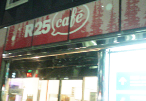 以前より一度行ってみたかった、銀座7丁目にあるR25カフェに行って来ました。外から見ると中がとても明るく、なんとなく入りにくく感じましたが・・中はガランと、シンプルで明るいです。R25モカ 400円 チョコディップラスク180円をオーダーきゃー!!念願のR25カフェアート!!ではでは、さっそくR25カフェで人気ナンバー1というチョコディップラスクを・・いっただっきまーーーーすがぶっ!がちんっ!か・・・硬い・・・・がぶがぶがぶっ・・・まーーーったく歯がたちませんけどぉ・・前歯で少しずつカリン・カリン・と砕くように食べました。店内にカリンカリンと食べる音が響きます。差し歯だと食べるの怖いです。。華ちゃんは奥歯で頑張ってガシガシ噛んで食べてましたが、ほっぺたにチョコをいっぱいつけてましたね。最近のきな粉棒はやわらなくて物足りないんだよーと、硬いきな粉棒を探し食べてる私はチョコディップラスク、かなりお気に入りになりました。ほんとに硬いんです!!噛むほどのほんのり甘くてコーティングされたチョコはビターでほんとに美味しいです。さすが人気ナンバー1商品です。固定ファンが多そうです。「R25」世代向けに「仕事の合間の10分間の止まり木」をコンセプトとしたビジネスカフェだそうで、BGMが無く(静かでおしゃべりすると声が響く)、やったらと明るい(読みやすい)です。女同士のお友達できゃっきゃっと行くカフェではなかったみたいで・・・気にせず話してましたが・・リクルートが出してるR25、L25、ホットペッパーなどフリーマガジンがそろっているので、1人で時間をつぶしたり息抜きしたりするにはぴったりのカフェです。次は女の子同士でおしゃべりが盛り上がるような、L25カフェ、作ってくれないかなぁ・・-ちょっとあいこさんの失敗-カフェではいつも「カフェラテ」を頼んでました。R25カフェのカフェラテアートはハートですが、カフェモカアートはR25なのです。なので初めて「カフェモカ」なるものを頼んでみました・・あ..甘いカフェラテとカフェモカの違いは、コーヒー豆(オリジナルブレンドともかブレンドみたいな)の違いかと思っておりましたのです。カフェモカってエスプレッソにミルクとやチョコレートシロップやココアを混ぜたものだったんですね・・無糖派の私にはちと甘すぎました。。華ちゃんが頼んだカフェラテ