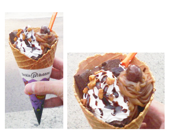 サーティーワンの夏のキャンペーン(ダブルを買うとトリプルに・・てヤツ)でサーティワンに通うクセをつけられてしまいました。。お得なキャンペーンはすっかり終わってしまったと言うのに、チョコチョコと通ってます。【オーダー】オータムサンデーのマロンショコラをロッキーロードのアイスクリームでhttp://www.31ice.co.jp/brj/htm/c01_2.htm#sundaehttp://www.31ice.co.jp/brj/htm/fm01.htmマロン!!きゃっ!きゃっ!ブラウニーがたっぷり!!チョコソースもたっぷり!!秋っぽいサンデーです。一番上に乗っかってるのは、てっきりマロンだと思い込み、楽しみに食べたら・・ただのアーモンドじゃん・・。。アーモンドも好きなんだけどさ・・・『マロンショコラ』なのにぃ・・モンブラン部分のニョロニョロ(?)も、もうちょっと欲しかったなぁ・・でも美味しかったー