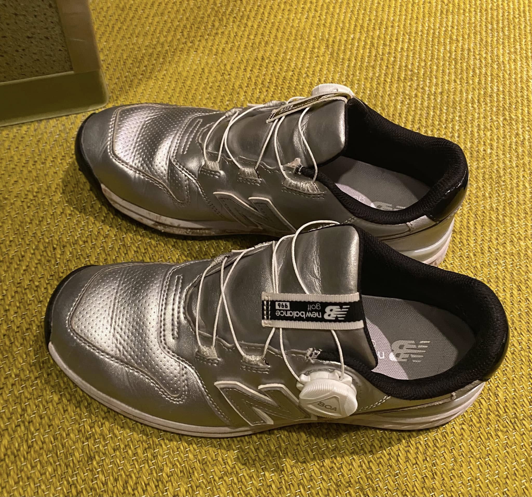 旅行に愛用しているこのゴルフシューズで、大転びをするとは。