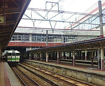 画像は越後湯沢て発車待ち合わせ中の普通電車です。越後湯沢ではほくほく線との連絡を確保するために少し長めに停車しておりました。