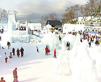 この支笏湖氷濤まつりは夜のライトアップが美しいのですが、この寒い中、日没を待つ訳にも行きませんので、ここで旅程を切り上げようかと思っております。空港で maman.mさんに教わったお菓子 を買わねば!。