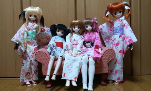 七夕過ぎたので我が家の娘たちも浴衣にお着替え・・・(実際は七夕である7日にお着替えだったのですが。。。)今年は何となく購入のアゾンさんの浴衣2着増えたのは良いのですが50センチ用なので今回は特別になのはさんとフェイトさんにも…陽菜ちゃんは、50浴衣set~桜しぐれ~フェイトちゃんは、50浴衣set ~月見うさぎ~なのはちゃんは、50浴衣set~朝顔の夢~このみちゃんとつぐみちゃんは個人ディーラーの方の…やはりえりりんは。。。と思いながらえりりんとしんしあさんとヘッド交換で(@_@;)ちょっと固まってもう1枚っとこの時期はやはり浴衣は良いよね・・・なのでした