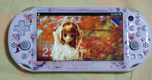 前回のタブレットに印刷余り部分ができるのであらかじめPS Vita用の大きさでFORTUNE ARTERIAL キャラアイコンなどを隅に印刷…それをPS Vitaに貼り付けてみましたちょっと痛々しい?かもだけど…お気に入り陽菜ちゃんデコレーション PSVitaも良いよね?Vita 保護アクリルカバーを付けた感じがこんな感じ…元々この様にするつもりでホワイト色に本体選んだんだよね…あとは裏面をするかどうするかなのよね…裏面は一筋縄では…だから考え物なの…(-_-)zzzこれにより外出時必須のタブレットとPS Vitaは陽菜ちゃん仕様に変化なのでありますよ~