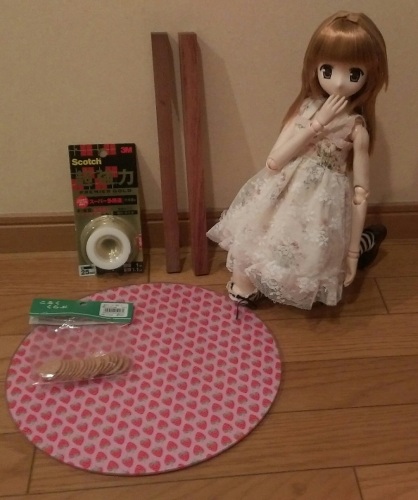 今回はDoll机を作ろうであります(今回の写真はすべて携帯での撮影なの)用意した材料は昨日の大阪駅ビル旧伊勢丹のルクア110での雑貨屋さんでのイチゴのガラス板がDoll用には良いなと400円(税抜)での購入そして今日に材木1本298円 接着剤&強力な両面テープなど購入なのであります材料イチゴのガラス板400円(税抜)塗装済み角材298円(税抜)X2本コルク298円(税抜)接着剤148円(税抜)強力両面テープ698円(税抜)以上であります(両面テープが高かった)まずは角材を4本に切断して切り口はやすりがけなどで調整なの。今度はコルクを切断した方へ木材の面積に合わせてカットであります(コルクは机置くことでの置いた場所の床などの傷防止なの)コルクに両面テープが張ってあるけど将来的に剥がれちゃうから接着剤でコルクを木に貼り付けでありますそうして反対側を強力な両面テープをコルクの反対に貼り付けでありますこうして木をガラス板の裏面につけてDoll用の陽菜ちゃん机の完成なのでありますよ早速陽菜ちゃん&えりちゃんのひと時なのでありますよ。