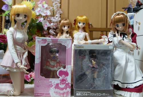 今月何気にフィギュアいろいろ買っちゃいました…フィギュアはDollメイン頃からは飾り棚が許容超えてほとんど買わなかったのですが…まずはピンクメイドの柚原このみちゃんこちらは中身が悪いのではなく箱がボロボロなので安かった…そしてマジックユーザーの柚原このみちゃんもそしてさらにTAITOのクジの柚原このみちゃんもそしてゲームは知らないけどKAROMIXの蒼海舞香1/8フィギュア(なんとなくお気に入りの悠木陽菜ちゃんと千堂瑛里華ちゃん融合したような…)そして通販でポチポチぽちった魔法少女まどか☆マギカからまどかちゃんとマミちゃんのキューポッシュ…チビッコのピコつぐみん&リプーちゃんとねんどろいどの千堂瑛里華ちゃんが気になって見つめているでありますチビ枠のライバルとなるか、それとも、チビ枠の活動が活発なるか…陽菜ちゃんも気になって・・・今回はなんだかんだとこれだけ…そしてこっそり千堂瑛里華ちゃんはDD千堂瑛里華 おしゃれしてお出かけセット手に入れていたのでありました…近いうちに瑛里華 ちゃんはこちらに着替えるかな??(瑛里華)これは陽菜ちゃんの衣装じゃないからね。(陽菜ちゃん)えっ。えっ?キュポは連れ歩く?から飾る場所は気にしないとして他は何処に飾ろう…(*_*;)