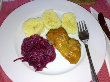 プラハではこんなものを食べてました。 彼のお姉さん家族、父方のおばあちゃんが集まったクリスマスのランチで食べたのは、アヒルのローストです。付け合せは紫キャベツの煮たのと、クネードリキー(チェコ料理の付け合せといったらコレ、のモチモチとした食感のダンプリング)。個人的な印象ですが、チェコはとにかくアヒルが美味い。お肉が引き締まっていて(地鶏ならぬ地アヒルなんでしょうか?)とっても味が深いです。このあとおかわりして、2切れいただきました。 旧市街広場近くの大衆食堂で食べたランチ。チキンカツレツとじゃがいも、ピクルス。グラーシュにパンにビール。これでお値段たったの500円!!安い秘密はというと、このお店セルフサービスなんです。入り口のレジで係りの人に右上に写っている紙をもらって、トレーを運びながら、自分の好きなものをカウンターの中にいる人にもらう、学食のようなシステムなんです。カウンターの中の人は紙に食べたものを記入。英語が通じるかは微妙な感じですが、安い、美味い、ボリューミーと、まるでチェコの吉野家のよう。完食したら立ち上がれないほどのボリュームでした(平均の日本人女子はきっと、この6割くらいしか食べれないと思いますが・・・)。グラーシュの味が特濃で、本当に美味しかったです。 プラハにいても、エスニック。街の中のカフェ兼バーに、「タイ風フライドヌードル」というのがあったので、パッタイだ!と注文したところ出てきたのはコレ。上の葉っぱが、ちょっとだけエスニックなテイストをプラスしているけど、これパッタイじゃなくね??まあ、不味くはなかったけど量が多かった・・・。やはりパッタイはタイ料理屋さんで食べなければダメですね・・・。 去年バリ島に行って以来、ナシゴレンに魅せられたチェコ彼は、「そろそろインドネシア料理が食べたい!」・・・ということで、プラハにあるインドネシアレストランを調べて行ってきました。しかし、メニューにナシゴレンもないしミーゴレンもない。もちろんガドガドもない。しかし、パスタがなぜかメニューにある。いや~な予感がするも、アヤム・ゴレン(直訳すると、炒めたチキンか?)とライスを頼んでみましたが・・・。美味しくない。せめてサンバルをかけてスパイシーに・・・とサンバルを頼むも、切らしてるどころか、最初から置いていない。うう・・・。プラハでインドネシアン食べちゃおうと思う私たちがいけないんだ、と凹みました。 プラハには、フランス風のパティスリーもあります。写真のパンは、彼のママが今年フランス人のパティシエのお友達とオープンさせるパティスリーのパンです。バターたっぷりで、美味しい・・・。詳細は今後、このブログでも紹介していきたいと思っていますので、よろしくお願いします。 こちらは、甘いクネードリキー。中にフランボワーズやイチゴが入っています。味は、お好みで、チーズ、お砂糖、溶かしバターをかけてカスタマイズ。チェコ人はこれをディナーに食べるそうですが、後でどうもしょっぱいものが欲しくなる。日本から持参したじゃがビーをボリボリ食べてしまいました。 GEISHAというチョコレートをお土産に。これはフィンランドのメーカーですが、チェコでも人気のようです。元同僚で友人のIはこのチョコレートがいたく気に入ったようで、「こんな美味しいチョコ、今までに食べたことない」と狂喜乱舞していました。中にはヘーゼルナッツのガナッシュが入っています。何でGEISHAという名前かと調べたところ、「芸者さんのように素敵なひとときを提供する」チョコだからなんだそうです。粋なチョコだな~。 プラハ、食事のアドバイス:僭越ながら、プラハでの食事について、個人的見解からアドバイスをさせていただきますと、プラハではチェコ料理、ヨーロッパ料理(主にイタリアン)、中華料理はOKだと思われます。日本料理(特にスシ)は、日本人経営の店でもあまりお勧めしません。街中で売っているスナック(特にホットドッグ)は安い上にとっても美味しいので、お勧めです!ホットドッグは日本で普通サイズのが75円くらいで買えたりします。カフェやスイーツも特に有名店が出店しているようではなく、普通の店でもそんなに美味しくないので、お茶はスターバックス(ついにプラハにも!)か、Coffee heaven(スターバックスのようなコーヒーチェーン)、セガフレードなどがリーズナブルな上、特に英語も通じますし、チェーンだから味とサービスは保証されているので、ちょっと休憩するときには良いと思います。