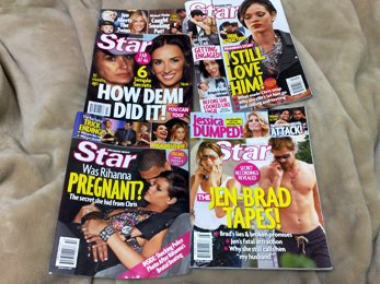 右上から時計回りに、リアーナ「まだクリスを愛してる」、ジェニファー「まだ結婚していたころのブラピの留守電メッセージを保存して聞いている」、リアーナ「クリスの子を妊娠か?」、デミ・ムーアの整形疑惑(疑惑ってか詳細解説ですね) 今から二年くらい前のことです。「やっぱ、これからは英語で国際情勢くらいディスカッションできないと!」と英字ニュース誌TIMEの購読を開始した私(詳しくはコチラの日記をどうぞ)。しかしコレ、毎週毎週送られてくるんですね・・・(週刊誌なんだから、当たり前なんだけど)。しかしさすがはTIME、記事が硬派だよ!その当時はイラク情勢とかの記事が多かったと思います。最初はキバッて、興味のない記事にも目を通すようにしていましたが、そのうち未読のTIMEが1冊、また1冊とたまって行き、ついには「もう、ウザイ!毎週送ってくんな!!」と逆ギレ。1年の購読期間が終わり、「これでやっとTIMEから開放される・・・」と安堵する私。もう英語力+時事知識の向上、という当初の目的は微塵も残っていませんでした。やっぱり興味のある分野の雑誌を読まないと!と言うことで私が次に申し込んだのは、アメリカのセレブゴシップ雑誌Star(我ながらえらい落差)。こちらも週刊誌なんですが、早く次の号が来ないか楽しみでしょうがありません。ハリウッドセレブの誰と誰がイイ感じだとか、ケンカしたとか、浮気したとか、ヨリが戻ったとか、結婚秒読みだとか・・・。このセレブとあのセレブのドレスがかぶっちゃって、どっちの方がイケてるだとか、今週のワーストドレッサーとか、あのセレブみたいなルックを手に入れるにはこのプロダクツを買わなきゃだとか・・・。ちょっと前は、ケイティー・ホームズが仕事と子育て、さらに夫(トム・クルーズ)にコントロールされて、精神的にボロボロになり激疲れ&激やせという記事が毎週のように載っていて、「ケイティ、ヤバい!!」という感じだったのですが、今はリアーナとクリス・ブラウンのDV問題の動向が毎週のように載っています。クリス・ブラウンの曲で、♪Excuse me, I'm talking to you♪ってのがあるけど、ナンパを無視したらパンチが飛んできそうだと思うのは私だけでしょうか・・・。あと定期的入る、ジェニファー・アニストンVSブランジェリーナの特集記事が見逃せないし、可愛いセレブ二世の写真を見るのも楽しみです(ちなみに私はスリちゃんよりシャイロ派)。と、思わず饒舌になってしまいましたが、やはり雑誌によって、モチベーションは全然違うようです・・・(気付くの遅すぎ?)。リーディングはStarで、ヒアリングはSATCを見て英語のメンテをしていますが(もうシリーズを5巡はしたかも)、友人には「下ネタに強くなりそう」と言われました。確かにね・・・。