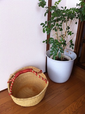 根菜類を入れて土間に置いておくのも似合いそう。 イデーショップでアフリカっぽいカラーリングのお鍋のようなカゴがいっぱい売っているのを見て、「可愛くて便利そう・・・」と思い検索してみたところ、このカゴはブルキナファソで作られている工芸品ということを知りました。 部屋に散らかった雑誌やジェロームの勉強道具(日本語検定のテキスト、電子辞書、本、単語帳や電気製品のコード類etc・・・)を入れて、ちゃぶ台の下に潜ませておくのに丁度いいんじゃないか?!ということで、買ってみました。 色は、プレーンなベージュ。さっそく色々入れてみましたが、収納力あるし、雑にモノを放り込んでも可愛いし、それに、思った通りちゃぶ台の下に置くのに うってつけ!持ち手があるのもモビリティーがあって便利だし(掃除機かけるときに、片手でひょいっと持ち上げられる)、いい買物でした。ごちゃごちゃ感もなくなって見た目にも涼しい!節電! もう一個、寝室用にも欲しくなった・・・。収納用品は1個買うと次々と欲しくなってしまいますよね。これの前にハマっていたのがアタのカゴです。バリの村で手作りされているカゴなんですが、こっちは小物収納にうってつけ。 特に、リモコンや化粧品なんかに絶大なパワーを発揮し、4個くらい頼んでしまいました。カゴにモノを入れただけなのに、すっごく片付く感があるのでやみつ きです。この前バリに行ったのに、そこでは買わずに帰国してからハマって注文しました(笑)。現地で買うと以外とそこまで安くないし、持って帰るときにかさ張るのがネック なんだよな~。カラフルなのもあります スキンケア用品や、綿棒、コットンをスパのように収納・・・ 狭いタイプにはしまい込みがちなフェイスマスク等シート系コスメを入れてます。