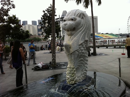 プラナカンミュージアムを見て、シンガポールの目的は果たした!とばかりに満足した私。「次どこ行く?」「マーさんでも見に行くか?」と友人I。馬(マー)さん・・・?友人Iのシンガポール在住のお友達Kさんは日本人。中華系の知り合いもいるのか?と思ったら、マーライオンのことでした。マーさん見たことなかったし、行く行く!とタクシーを拾って「マーライオンが見えるところまで」と告げる私達。タクシーで10分も行かないうちに、見えて来たマリーナ・ベイ・サンズの船を高く掲げたようなビル!「ああっ!」と思わず歓喜の声を上げる私。「aitan・・・タクシーの運ちゃん、びっくりして振り返ったじゃないか」と友人I。友人Iは過去に何回もシンガポールに来ているので、今回は余裕のようです。私はベタなランドマークを見るとテンションが上がってしまう正しい観光客。湾に向けて「シババババ・・・・」と大量の水を吐き出すマーさん。ちょっと飲み過ぎたときの自分の姿が脳裏をよぎりますが・・・(苦笑)。 小さいマーさん。 大きいマーさん。 マーさんとマリーナ・ベイ・サンズ。今度はここに泊まりたいなあ・・・。 マリーナ・ベイ・サンズの上の船を持ち上げる真似をして写真を撮ったりしてみました。ベタ~。コーヒービーンで一休みした後、観光用のボードにのってクルージング。クラーク・キーという場所で降りて、本日お待ちかねのディナーです。「ことりっぷに載っていたチリクラブが食べたい」という私のリクエストで、今夜はチリクラブ。JUMBOという海鮮レストランに行くことに。チリクラブというのはシンガポール名物だけど、カニはスリランカから空輸するらしい。でもスリランカのビーチサイドではそんな料理なかったなあ(スリランカカレーばっかだった)・・・なんか不思議。 珍寳(宝)海鮮、JUMBO・・・。 予約なしだったのですが、ちょっと待っただけで入れました(夜6時くらい)。一応2時間制で、ちゃんとスタートタイムが書かれた札がテーブルの上に置かれます。うう~ん、人気店なのねえ!リバーサイドに並べられたテーブルはお客さんでいっぱいです。タイガービールとチリクラブ(時価。お店の人が「今日はこれくらいの値段だけどいい?」と確認してくれます。味付けもチリ、にんにく、醤油、みたいに数種類の中から選べるシステム)、チリコンカン(青菜の炒めもの)、シーフードチャーハンをオーダー。ちょっと少ないかなあ?と思ったけど二人でお腹イッパイになりました。 チリクラブ、キター! カンジャンケジャン風に、甲羅の中で飯とチリを混ぜてみる。焼き肉屋さんのように紙のエプロンをして、いざチリクラブ。「うううう・・・うまい・・・(泣)」「間違いない!」と舌鼓を打つ私達。リバーサイドの夜風にチリクラブに、最高じゃないですか?!サイドの青菜とチャーハンも派手なチリクラブに霞みがちだが絶妙にうまいのだ。カニを食する時のお約束通りに沈黙してお手手を真っ赤にしながら、どこかの島の原住民のようにカニ肉をむさぼり食う私。指についたチリソースも、「チュバッ!」としつこいホモのキスのような音を立てつつ、しゃぶります。そしてノドに流し込むタイガービール。シンガポール最高だ・・・。私達の隣に20代後半くらいの日本人カップル(男は痩せているメガネ着用の絵に描いたような草食男子、女の子は結構可愛かった気が)が座っていたのですが、ふと彼らのテーブルを見た私。彼らも名物チリクラブをオーダーしていたのですが・・・その光景に驚愕!!!なんとテーブルの上にはナイフとフォークがあり、グラスで赤ワインを飲んでいるのです!!!一体どうやってナイフとフォークでカニ肉をほじくって食べると言うのだ・・・と、「ガラスの仮面」のマヤの演技に驚愕した人のように目の中が真っ白になる私。「モテようと思って、ナイフとフォークを使ってる奴がいたんですよ~」「な~にィ~!やっちまったな!!!」「男は黙って、手づかみ! 男は黙って、手づかみ!・・・」と、頭の中で小さいクールポコの二人がネタを繰り広げます。マジか!しかも飲み物はワインだと~!(まあ、これは好みだから・・・)紙エプロンも付けずにナイフ&フォーク、しかもワイン!!醸し出す雰囲気的にも全然打ち解けていない二人(なんか遠慮しいで大人しいのだ)、もしかしてまだ肉体関係がないのか?でも、シンガポールまで旅行に来てるんだよな~一体、どういう関係?と彼らが気になってしょうがない私。二人の関係も気になるけどそれ以上に、足先までパンパンに身のつまったカニ肉をナイフとフォークでどうやってほじくるのだろうか・・・と心配でしょうがない私なのだった。その後のカポーが気になったが、時間になったのでレストランを後にしてリバーサイドの店でちょっと飲んだ後、タクシーでホテルに戻ったのでした。これにて1日目は終了。2日目に続く・・・。