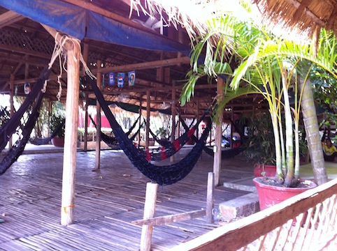 バンテアンスレイを観光した後は、ランチタイムです。今日は普通のレストラン・・・と思いきや、しっかり休憩用のハンモックが装備してありました。隣には売店があり、トゥームレイダーのDVD(もちろん海賊版)が売られていました。 アモックと白身魚のココナツミルク煮込みで、優しいカレーといった感じの料理。美味しかった。 ハンモックと トゥク!カンボジアのトゥクは最大4人がけ。屋根付きなのが嬉しい。 続く