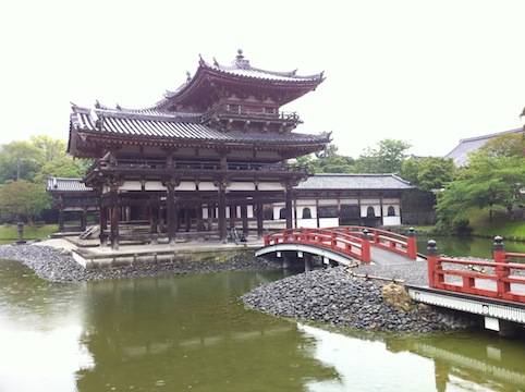 宇治にある世界遺産、平等院鳳凰堂を見学。鳳凰堂っていうのは英語でフェニックスホールって言うんだそうです。せっかくだから、300円払って鳳凰堂の中に入ってみることに。中にある黄金の阿弥陀如来様も拝むことが出来るし、日本語のガイドも付きます(20分くらい)。残念ながら撮影は禁止。鳳凰堂から前庭を臨む上がり口の部分に立ち、おもむろに財布から10円玉を出す私。「ドネーションするの?」とマミンカ。「私達は、今ここにいるよ!」とドヤ顔で10円玉の平等院の真ん中を指差す私なのであった。 横から見た鳳凰堂。赤い橋を渡って中に入ります。 均整が取れていて実にイケメンな鳳凰堂。 ピントずれてるけど、比べてみた。 蓮と鳳凰堂のコラボレーション。平等院の敷地内にあるミュージアム、鳳翔館の中では実際に彫刻を近くで見ることが出来ます。雲の上に乗った雲中供養菩薩が、流れるような彫刻で綺麗だった。お迎えに来るときに阿弥陀如来と共にやって来ると言う方達だけど、生前の行いや信仰の厚さによってお迎えの豪華さの度合いが違うらしい。思わず顔を見合わせる私と夫なのだった(笑)。 ミュージアムショップでお気に入りの雲中供養菩薩をゲット。宇治公園の近くで抹茶ソフトクリームを食べて(超美味しかった)、公園で少し休憩。公園の茂みにヘビイチゴがたくさんなっていました。「これ、食べたらお腹痛くなる?」と私に聞くマミンカ。「いや~、大丈夫だと思うけど」と適当に答えると、美味しそうな一粒を取って味見をするマミンカ。「美味しい!」と私にすすめて来るので、私も恐る恐る食べてみた・・・本当、甘酸っぱくて美味しい!こりゃヘビイチゴじゃなくてフランボワーズか。「美味しい美味しい」とイチゴを食べまくる私なのだった(私は大丈夫だったけど、良い子は真似しない方が)。 ラズベリーと赤い橋のコラボレーション。 停泊中の観光船も絵になる。 団体さんがいるときは結構賑やか。 やはり茶そばを出す店が多い。 これにて午前中のプログラムは終わり(時間的には既に午後になっちゃってたんだけど)。お昼を食べて、京都市内に戻ります。お昼は、平等院の参道にあった適当なところに入って、お蕎麦を食べたんだけど、味は見事に普通ーだったので、もっとリサーチしておけばよかったと後悔しました。続く
