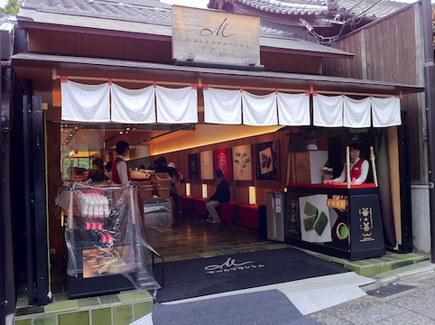 清水寺を後にして、参道のお土産屋さんに寄りつつ産寧坂に向かいます。 ここで行きたかったのが、お菓子屋さんマールブランシュのショップ。有名店なのでお好きな方も多いと思いますが・・・なにより、ホワイトチョコが挟まった抹茶のラングドシャが旨い~~~!!知り合いの方にお土産で頂き、あまりの旨さに悶絶したのです。夫ジェロームも大好きになり、プラハに行く時は土産用に大きな箱を取り寄せるアディクトぶり。関西在住友人umekoからは、マールブランシュのメープル&カラメルパイをお土産にもらい、その旨さにも悶絶しました。しかしumeko、抹茶のラングドシャ「茶の菓」のことを「茶のしずく」と間違って覚えていました(笑)それは問題を起こした石鹸・・・。 マールブランシュのお店に入ると、小さな飲み物と抹茶ラングドシャ「茶の菓」(1枚)のサービスが。ちょっと座れるスペースもあるし、カフェ行くまでもないかも。マミンカも「美味しい!aitanがオススメするのわかるわ」と何箱かお買い上げ。モティロン私も大きな箱入りを買いました~。 出来れば一人で全部食べたいところ・・・。 その後は、 産寧坂~二年坂の町並みを愛でつつ、目についたお店に入りお土産ショッピングをしました。よーじやで白粉つき油取り紙(これ知らなかった。優れもの!)を買ったり、松栄堂でプラハに帰った時に、京都を思い出して焚く為のお香を選んだりしました。 これぞ、しっとり京都の風景どすえ~! ぶらぶらお散歩。 修学旅行生がいないのも落ち着いた感じ。 いい感じの甘味処もたくさんありました。 叶 匠壽庵のカフェにて一休み~。求肥入り羊羹「あも」うます。 私達がお散歩したときは、夕方5時くらいだったんだけど、すでに店じまいをしているお店も多数・・・イノダコーヒーもクローズしていた!意外と京都の店は閉まるのが早いのね・・・とビックリ。京都はお寺、カフェともに早めの行動がキモのようです。この後、宿に帰って鴨鍋を食べました。 3日目に続く