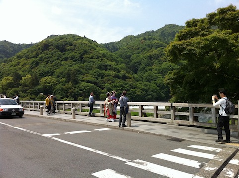 さて3日目。2泊3日なので今日の夕方、名残惜しいですが京都を発たなければなりません・・・。夕方までに、金閣寺、銀閣寺、嵐山の竹林(天龍寺)まわれるか!?いや難しいだろうな・・・。しかし、今日は関西在住の友人umekoが合流してガイド役を勤めてくれることに!宿をチェックアウトして、京都駅のコインロッカー(数がいっぱいあるので、余裕で預けられます)に荷物を預け、改札前の吹き抜けのところでumekoと待ち合わせ。現れたumekoは・・・なんとチェコ語で夫とマミンカに「ドブリーデン!」(こんにちは)と挨拶!マミンカと夫もビックリ感激。 前日にネットで調べたチェコ語と英語の挨拶(しかもプリントアウトじゃなくって手書き!)の紙を握りしめていたumekoだったのでした。ガイドumekoの提案で、嵐山まで行きトロッコ列車に乗る→金閣寺→銀閣寺(時間切れになったらそこで終了)というコースに決定。電車で嵐山まで行き、渡月橋の周りをブラブラ→天龍寺(竹林)→トロッコ列車の嵐山駅に行くことにしました。 渡月橋にて舞妓Haaaan!!!発見!! 思わずズームイン!しかし、umekoによると「たぶん偽物だよ~」とのこと。よくあるコスプレ体験ってやつね~。 新緑の嵐山が目に眩しいぜ!!! 天龍寺のお庭。 癒される~。画面に人は映っていませんが、後ろにたくさんお客さんがいます。 錦鯉インザポンド!!! レディースイン着物!! 「セ・ジョリ~」と、竹林に癒されるマミンカ。 野宮神社の願い事の石に触ると、1年以内に願いが叶うらしい。 よく飛行機に乗るので、旅行安全祈願をする夫。 指月庵で抹茶アンド和菓子を頂きました。 抹茶と和菓子でホッと一息・・・。しかし、umekoが予約しておいてくれたトロッコ列車の時間が迫ってきました。嵐山のトロッコ列車は、保津川を見下ろしつつ、自然の中を行く観光列車。土曜日だったのでumekoが混むのを見越して席を予約しておいてくれたのです。竹林の中を嵐山駅へ向かってダッシュ!続く