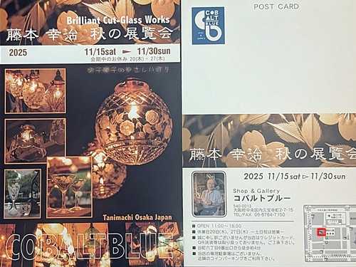 11/15(土)~11/30(日) コバルトブルーで藤本さんの切子展を開催します。藤本さんの繊細…