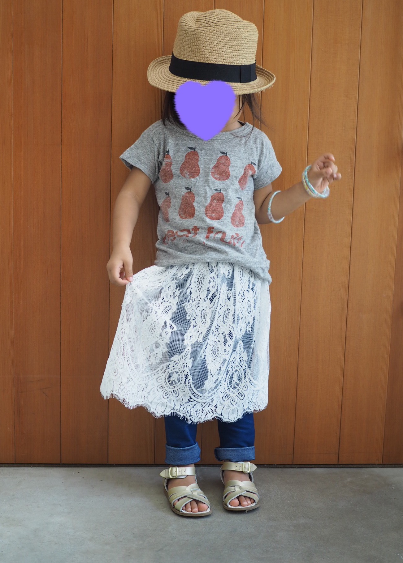 レギンス付きレーススカートは次女に。