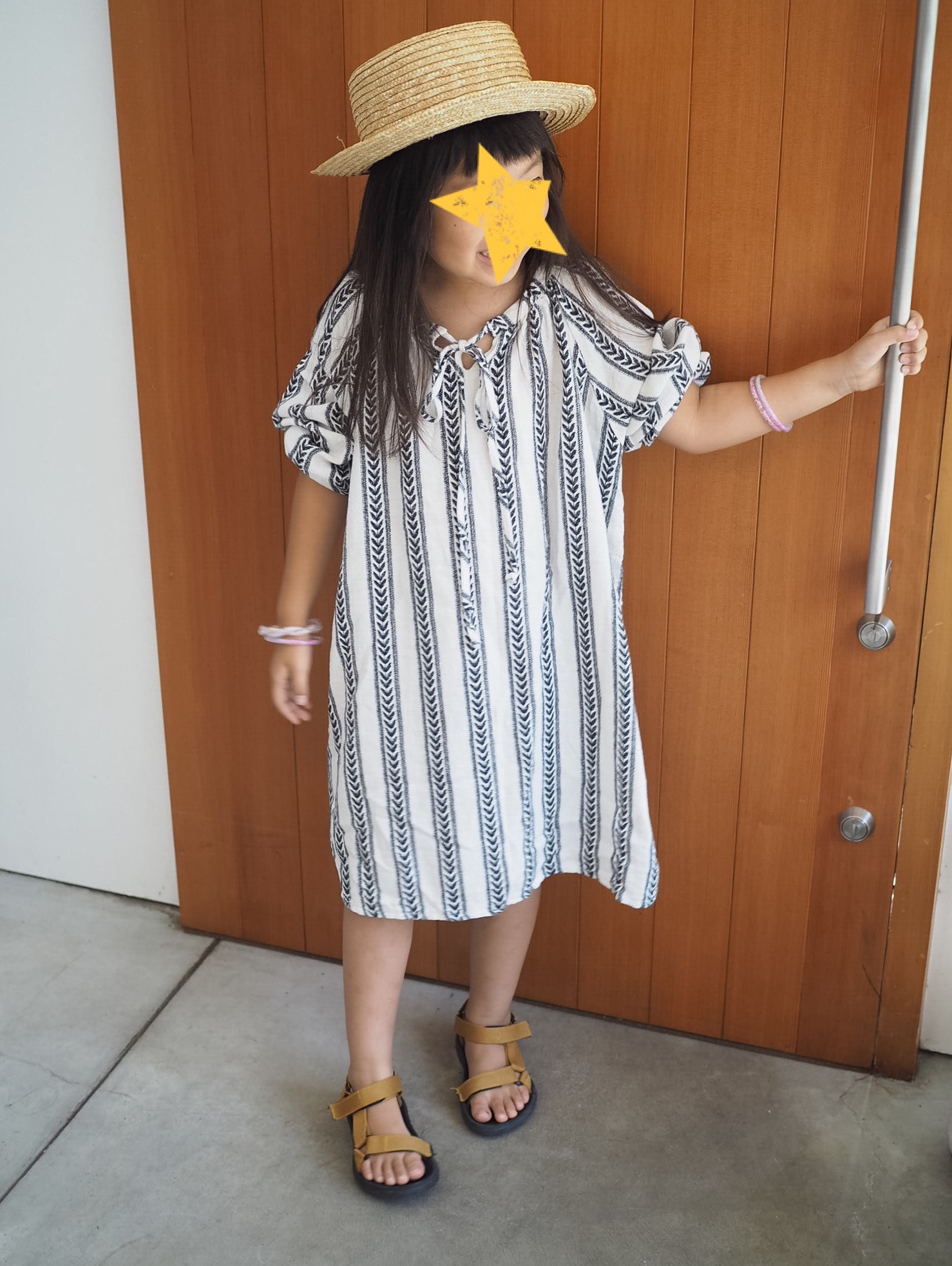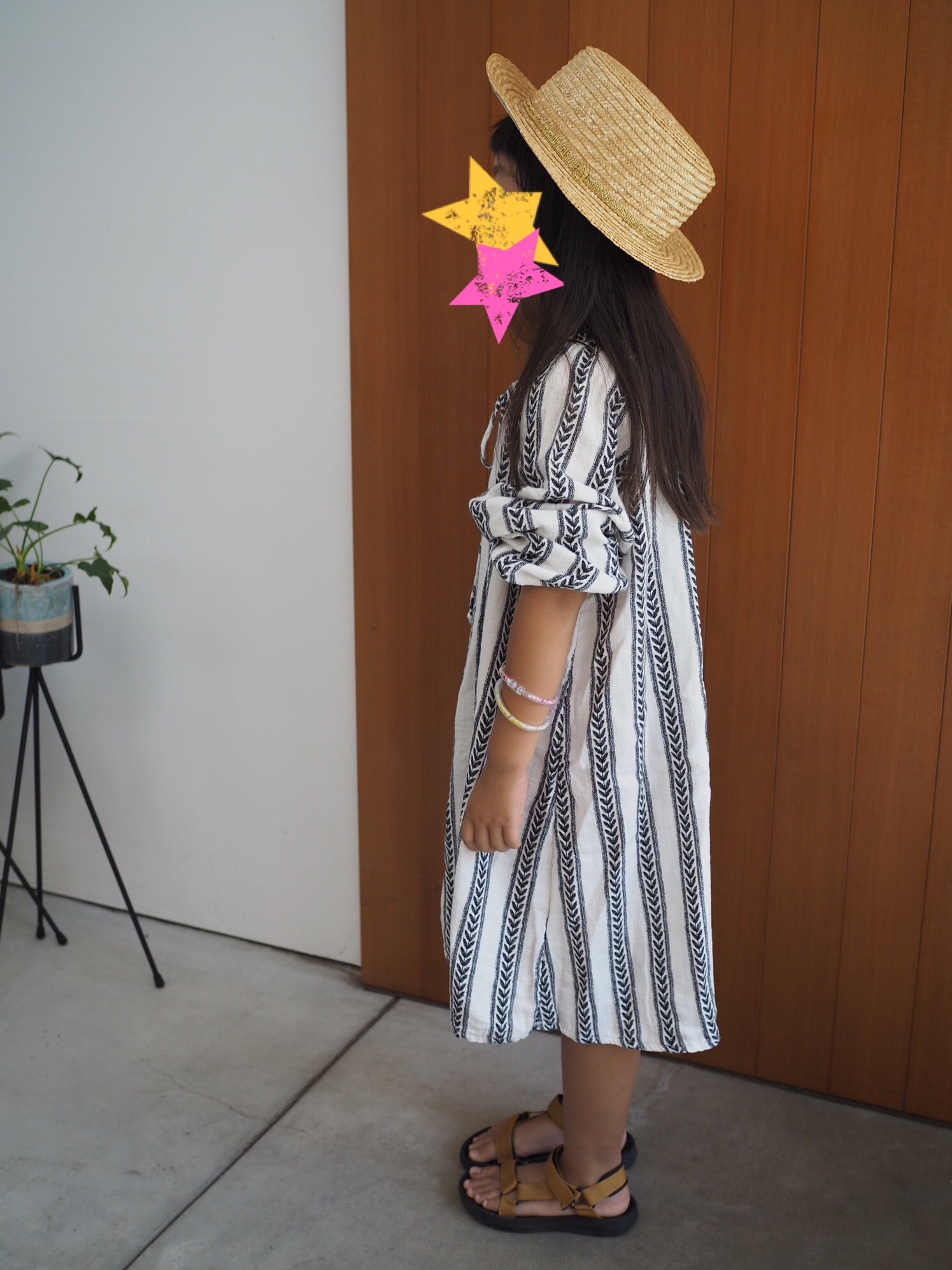 ペーパーハットとサンダルでまだまだ夏コーデ。