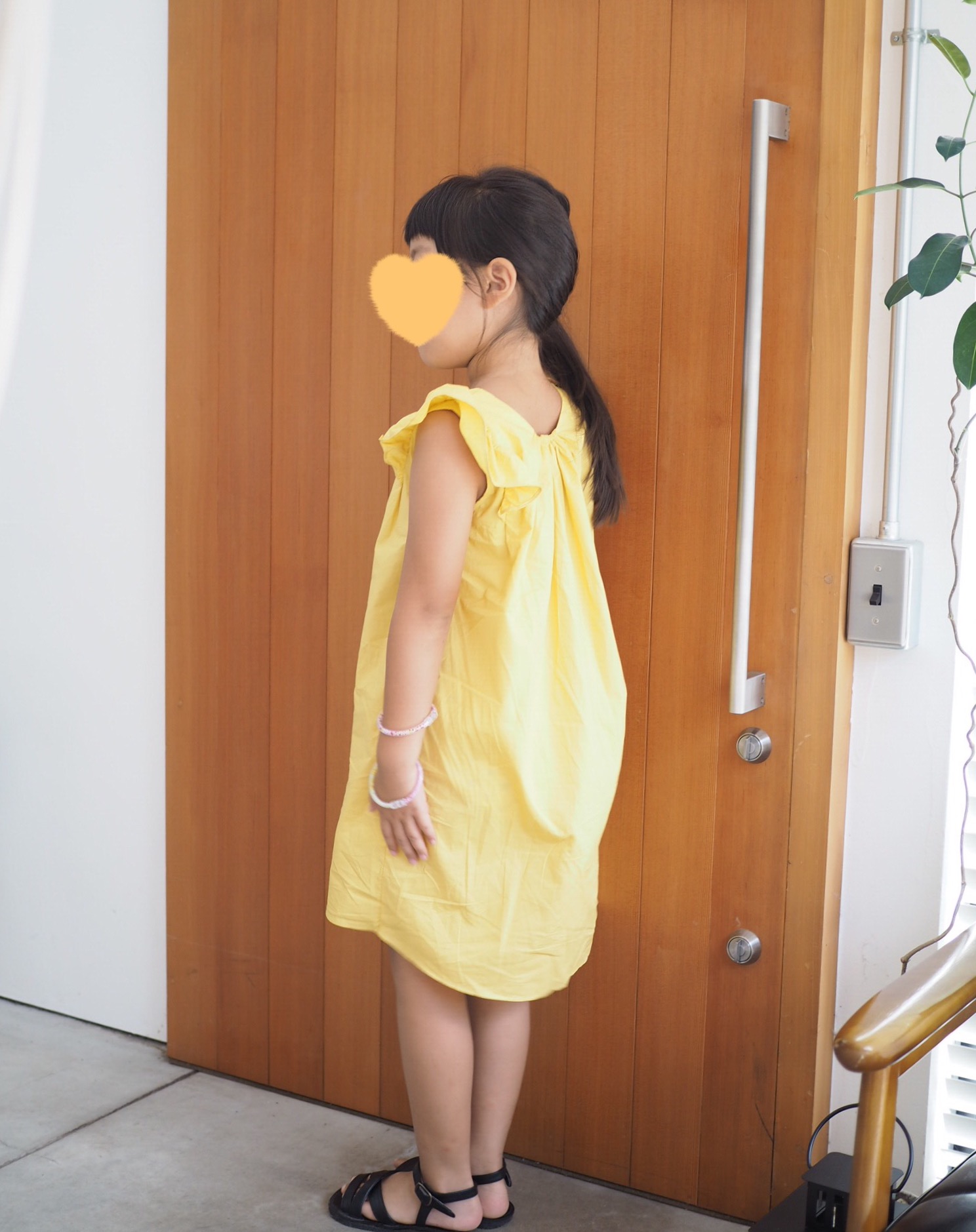 購入したワンピースを着てもらった長女の腕にも