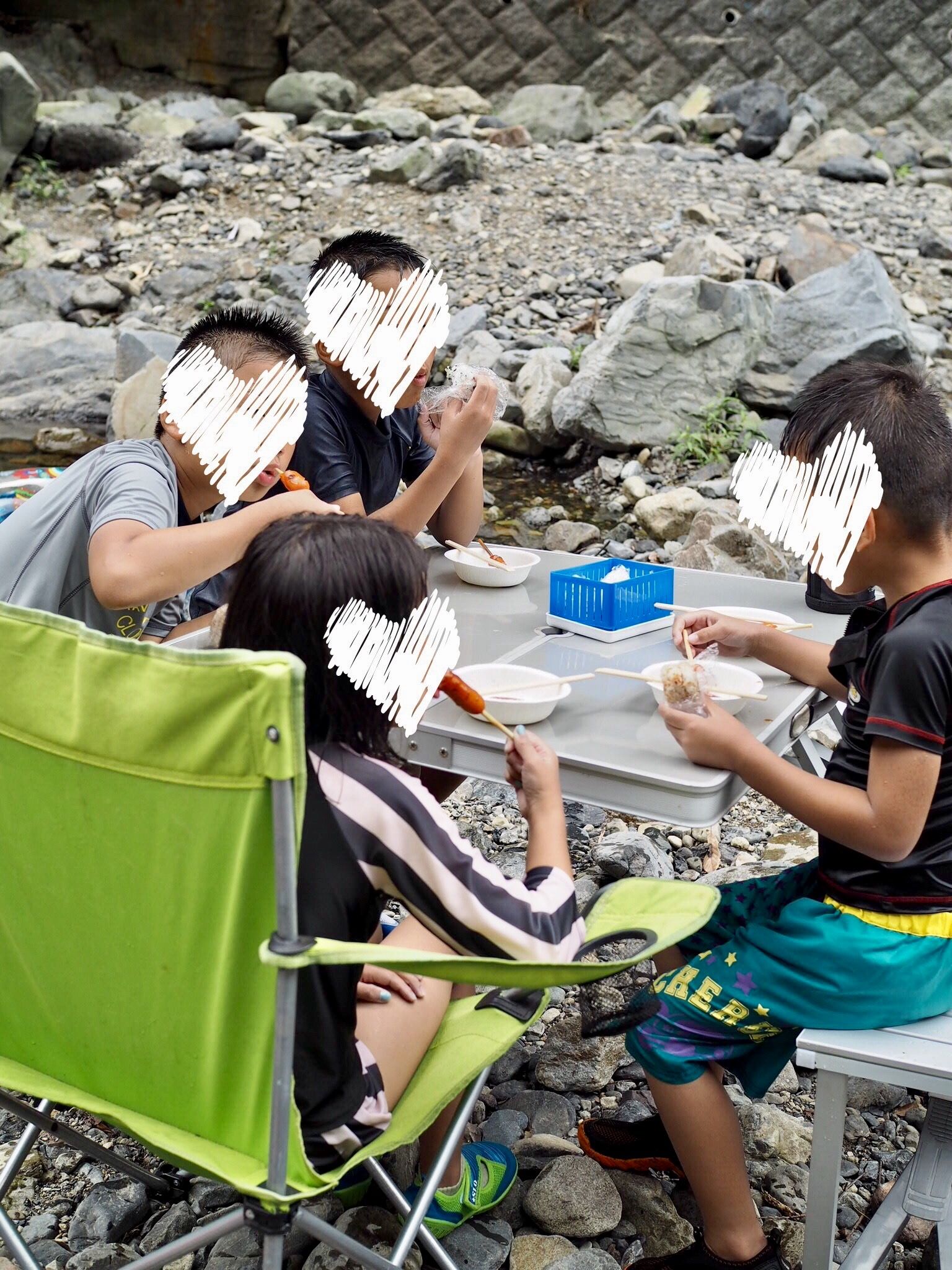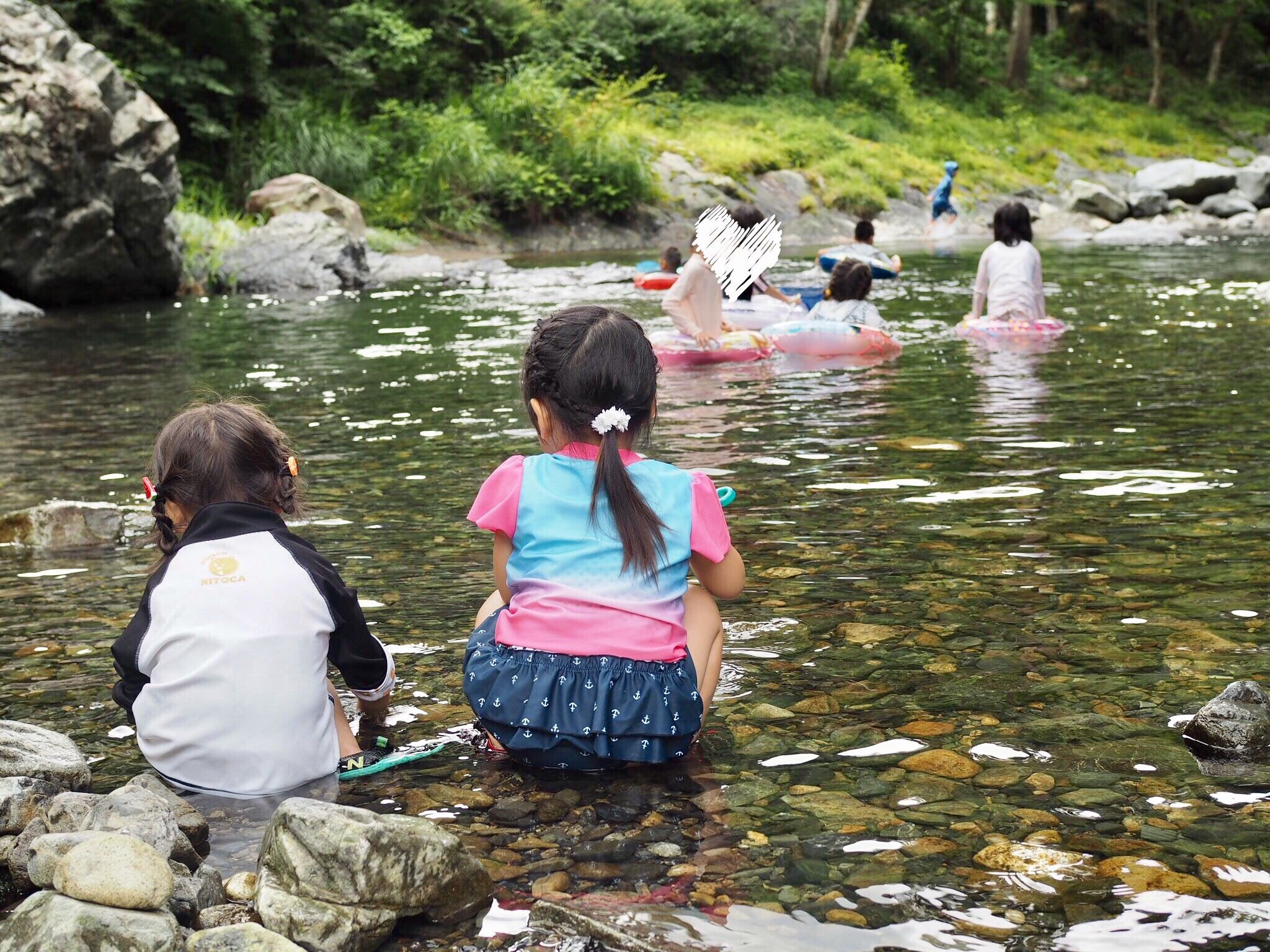 先日、毎年恒例となっている、お友達家族との川遊びに行きました!
