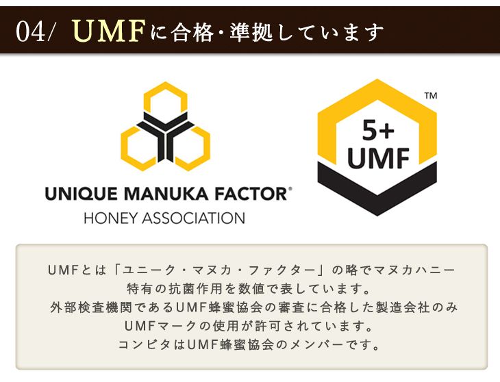 UMF5+などのように、抗菌作用を数値化して表示されます。