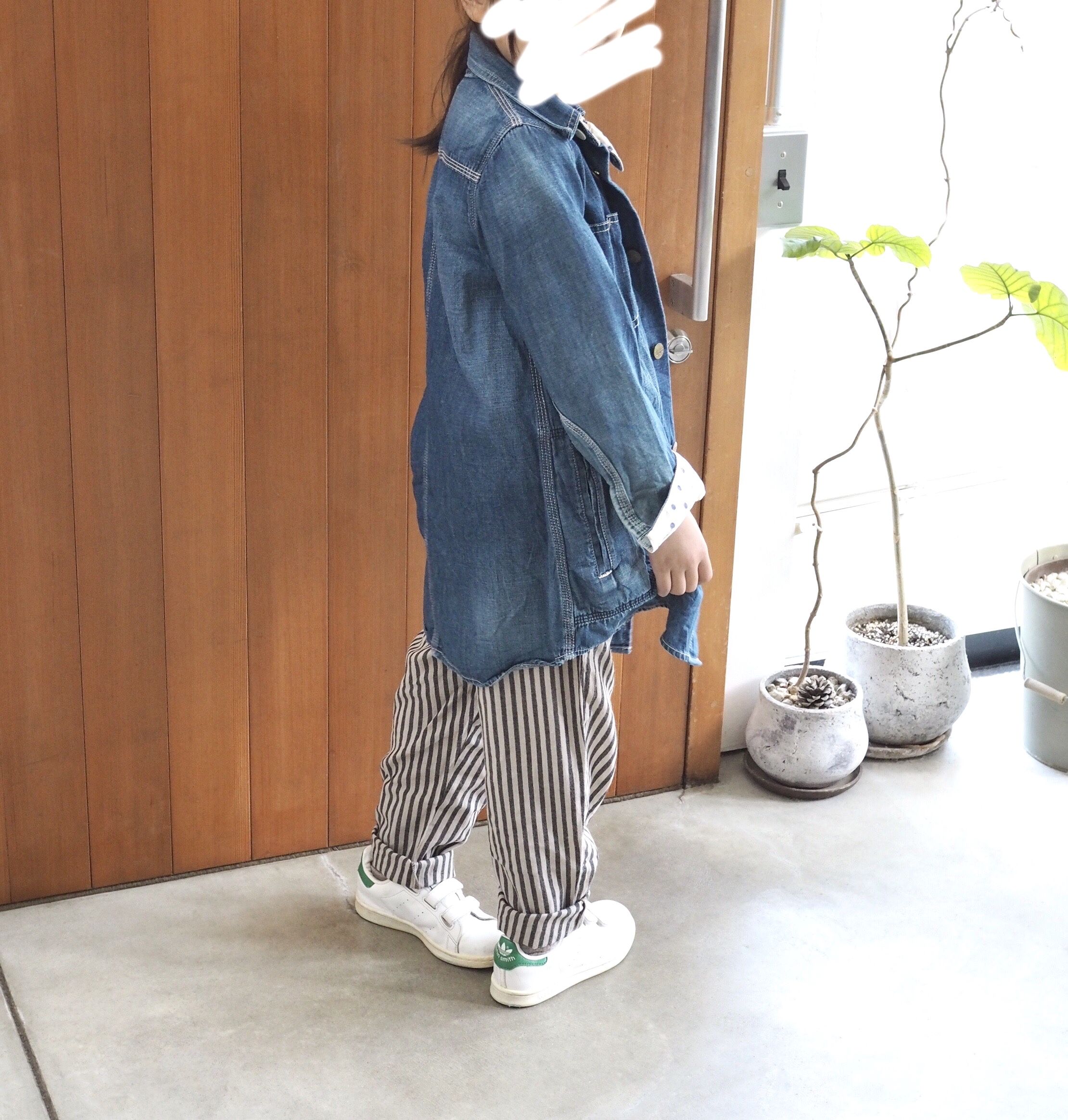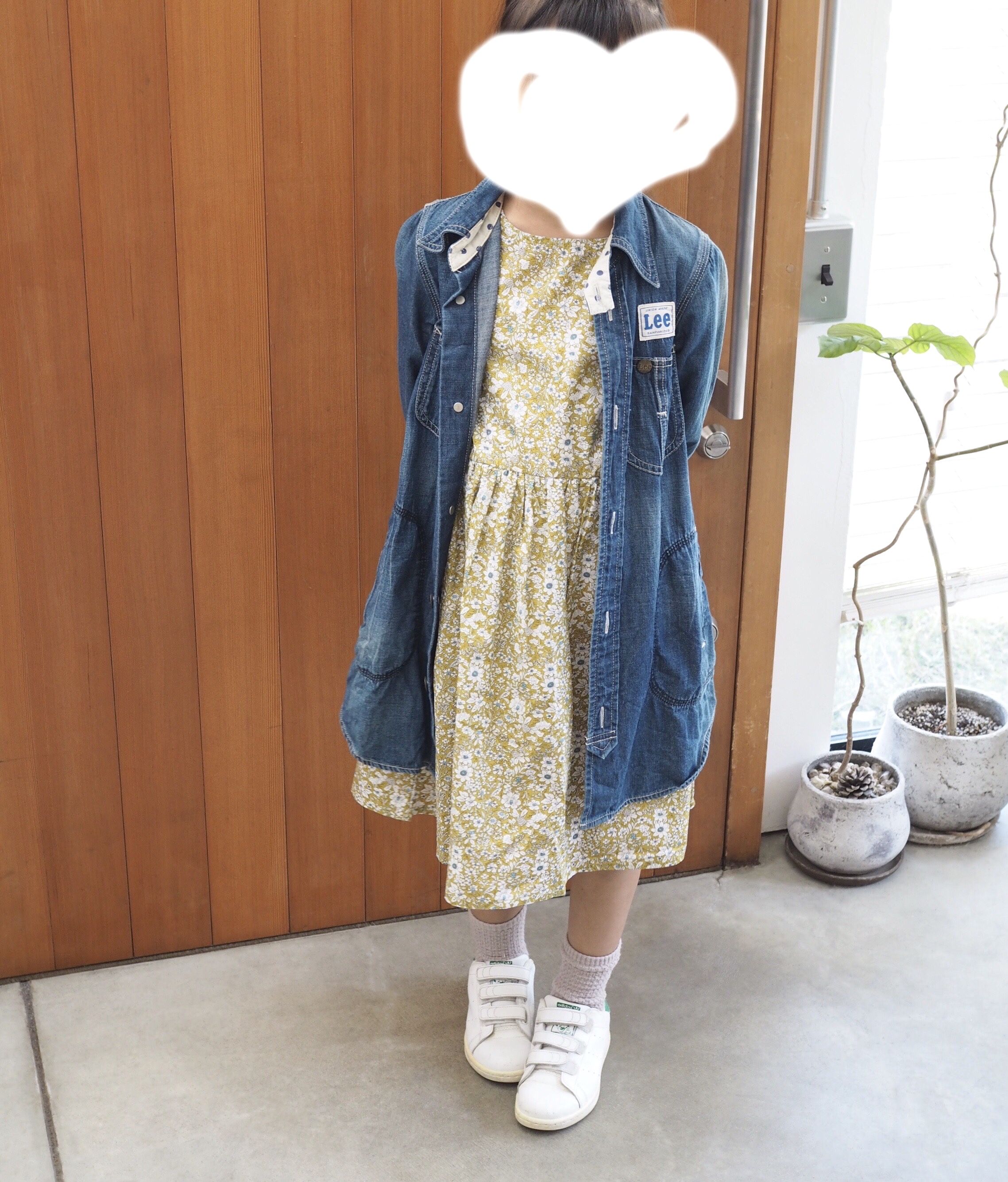 Leeのデニムシャツワンピースは長女のお下がり。