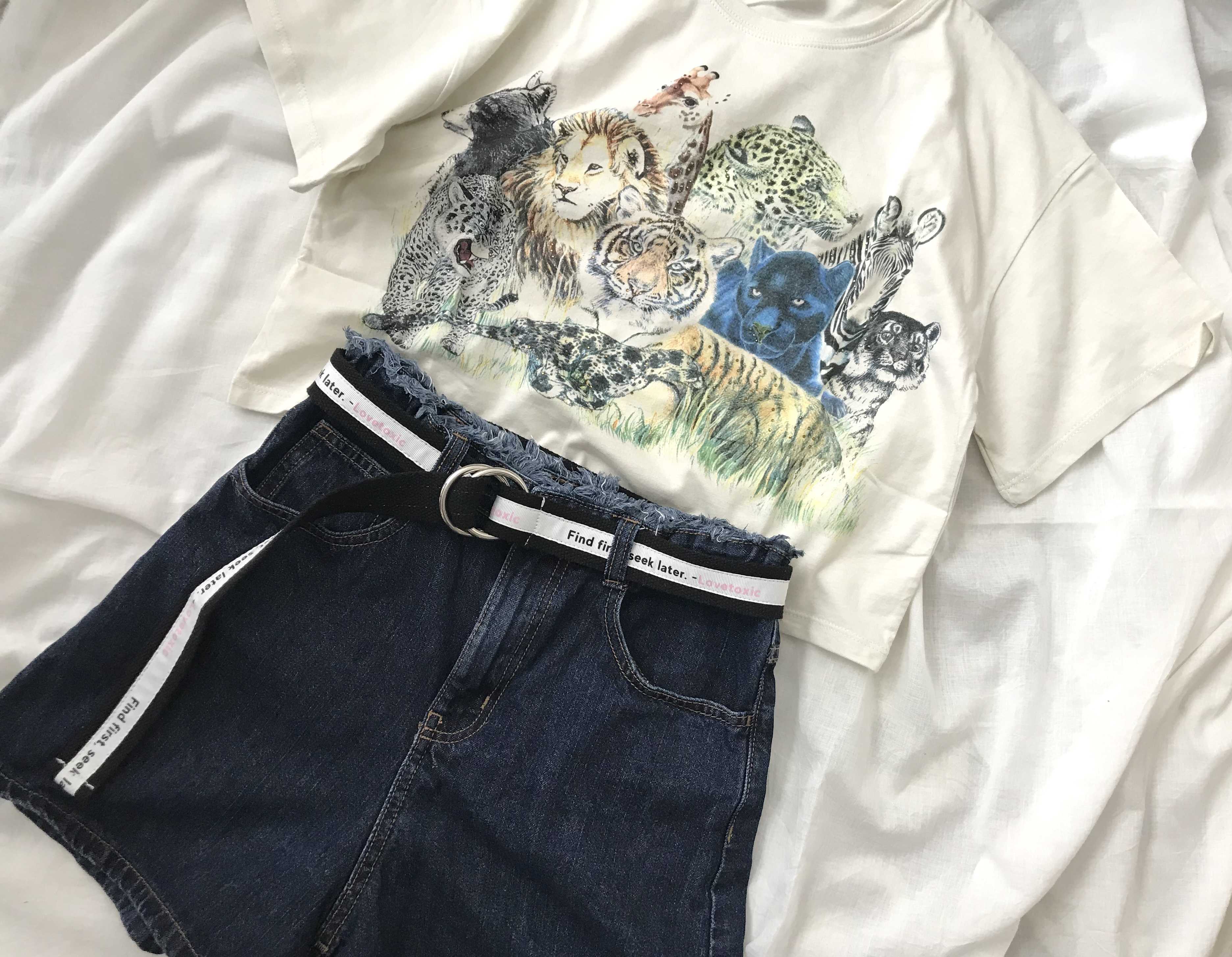 アニマル柄のTシャツは、よく見るとキラキラの