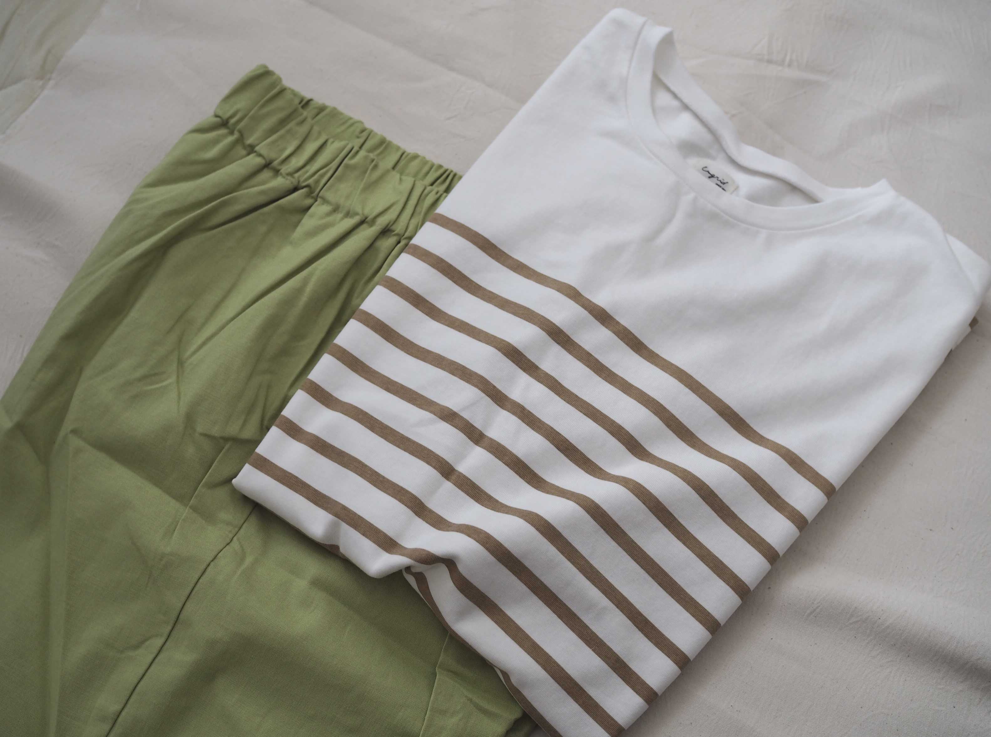 ungridの、ベージュのビッグボーダーTと合わせたら好きな感じに♪