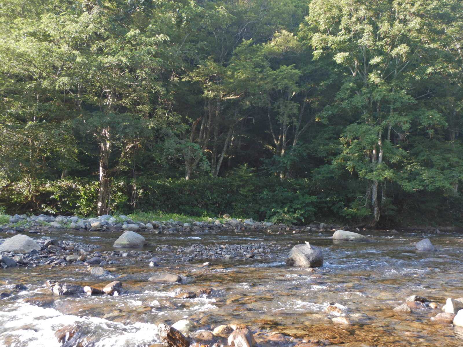 暑さが戻って来たようで昨日は最高気温が35℃、今朝はこの夏初めての最低気温が25℃と熱帯夜になってしまいました。少しでも涼しい渓流釣りに行くべく、早起きして釣り場へと向かいました。山道ではススキが目立つようになってきました。蕎麦の白い花も咲き始めてきました。ほとんど雨らしい雨は降っていないようで渇水気味、水も冷たくは感じませんでした。小さいイワナばかりです。魚影は見えるのですが毛鉤には見向きもされませんでした。流れに立てばいくらか涼しい気はしますが、渓流でもじりじりとした暑さは感じます。良型は2匹だけでリリースするとしばらくその場に留まっていました。水温と水量のせいなのか余程条件が悪いようで、なかなか思ったようには釣れませんでした。アブはだいぶ少なくなってきました。もっとも虫よけスプレーをしていれば刺される(咬まれる)ことはありません。赤トンボも涼しくならないから里には下りないようです。水田や夏野菜など水不足の所もあるようですが、山奥の渓流でもまとまった雨が欲しい所です。