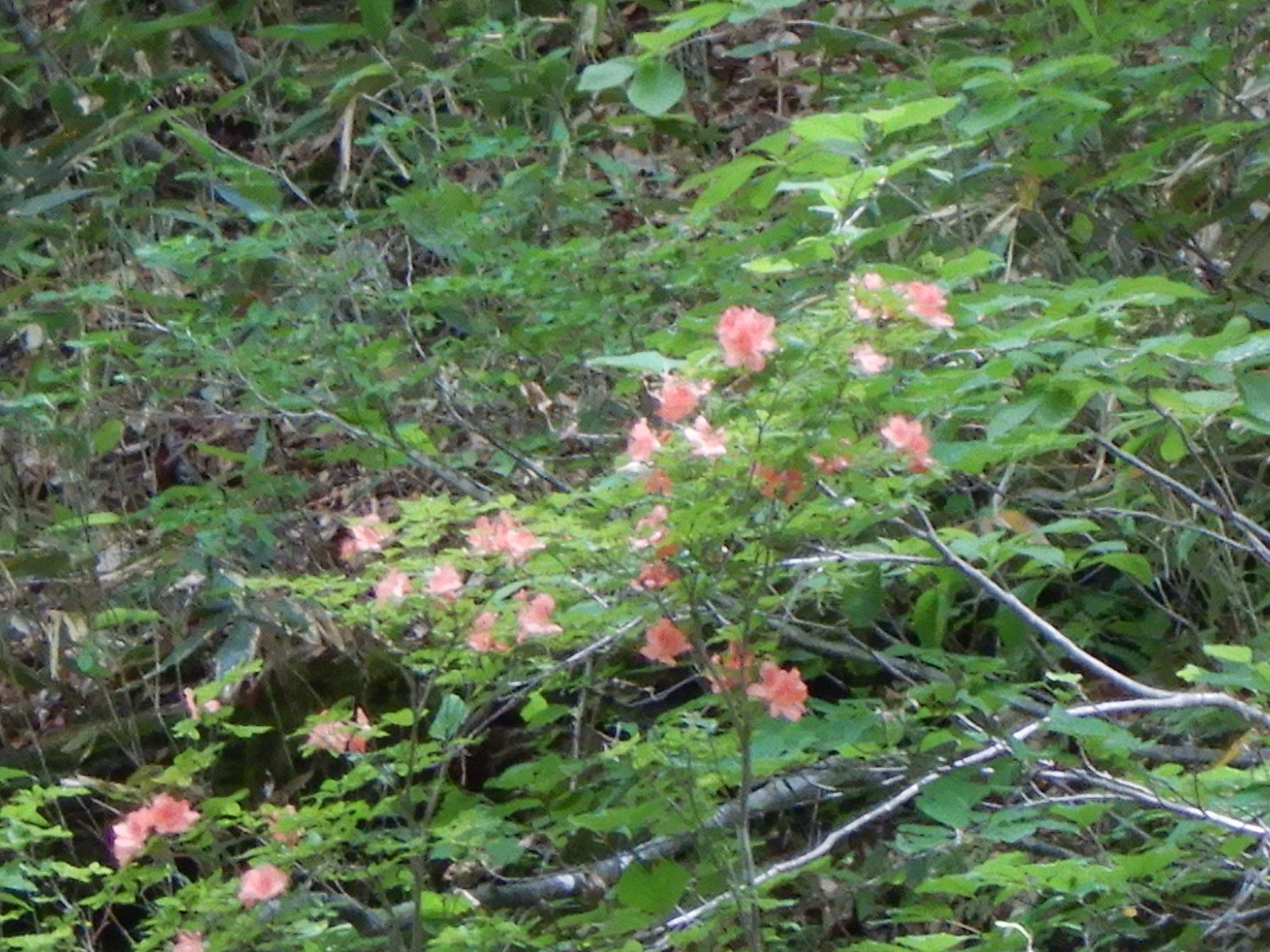 標高1000メートルのこの辺りは森の中にヤマツツジが咲いていました。
