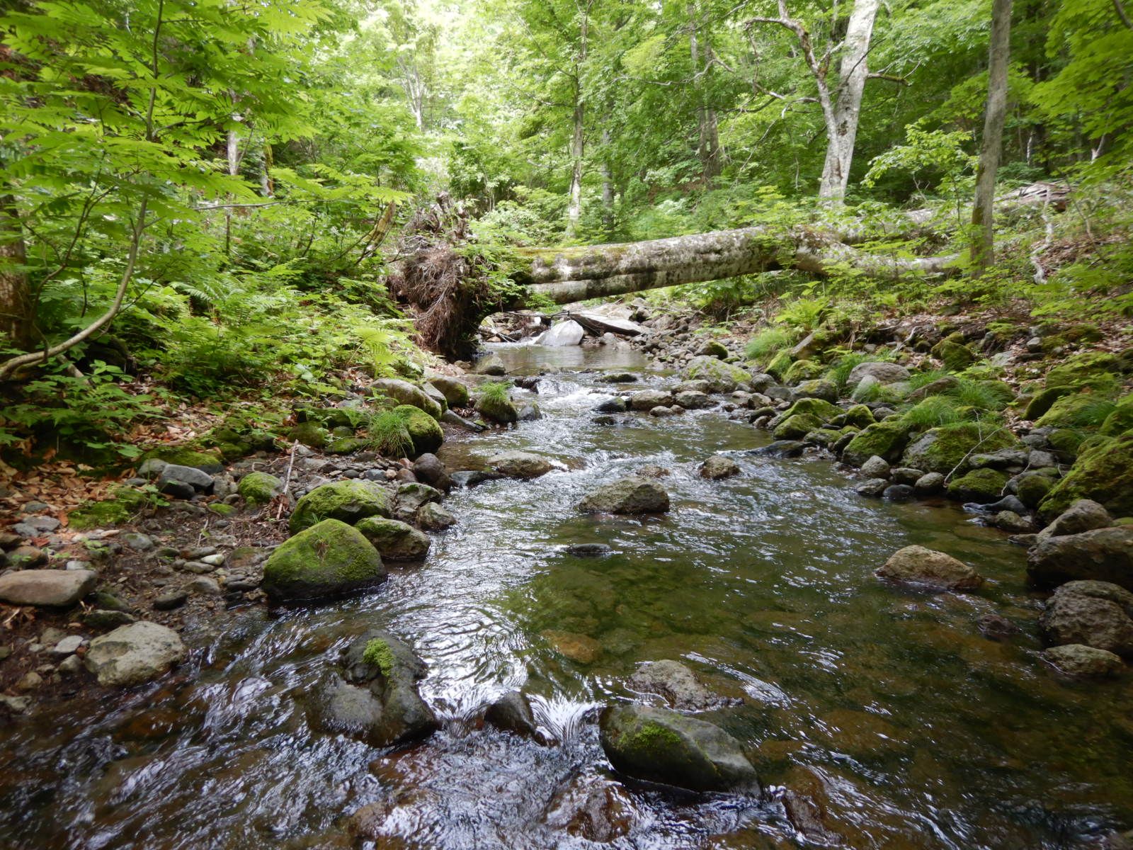 ブナの森を流れる川幅5メートルほどの小沢です。