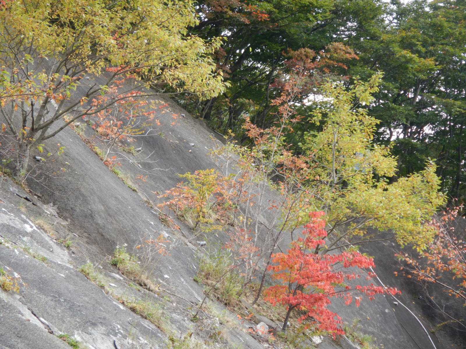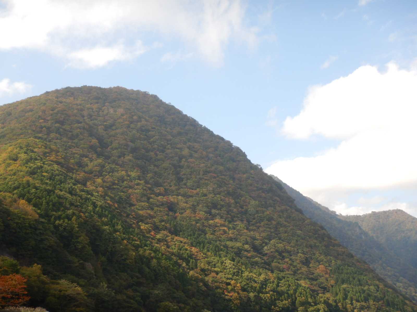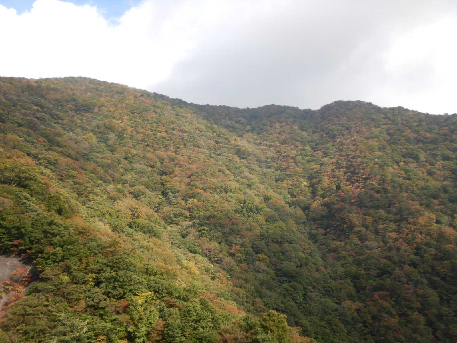 ダムの周りの山の紅葉の進み具合はというと、標高1000~1200mの山でこんな感じでした。