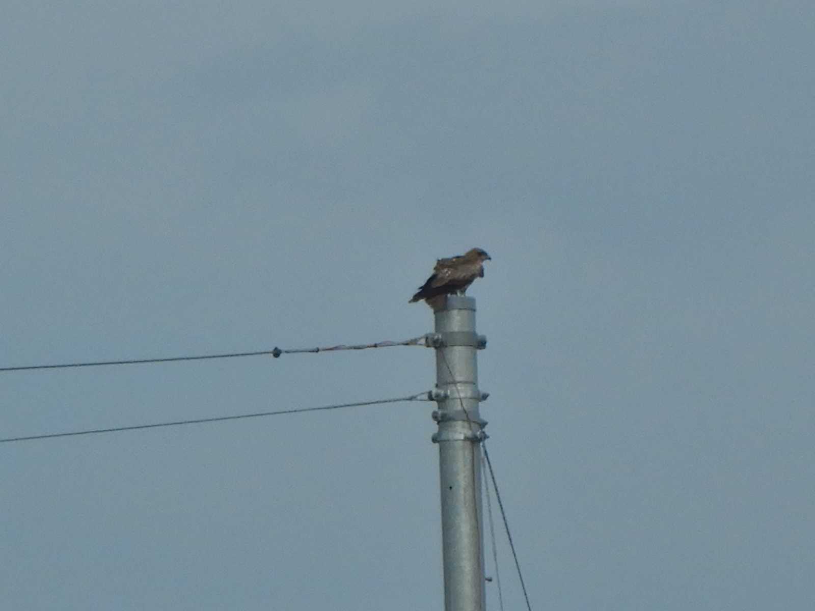 トンビが止まったのは鮎釣りが見たかったからなのでしょうか、トンビと分かったのはピーヒョロロと鳴いたからです。