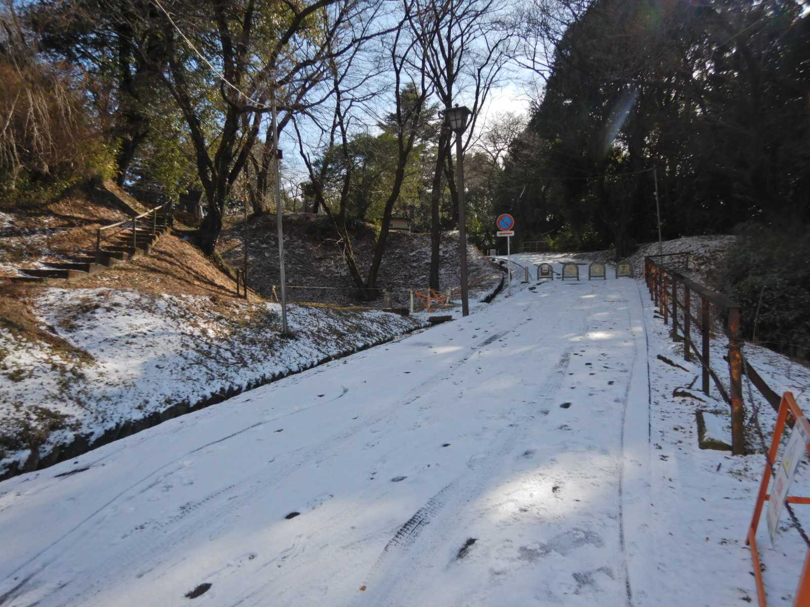 気温は低いので日陰の坂道には雪があって危険な状態です。