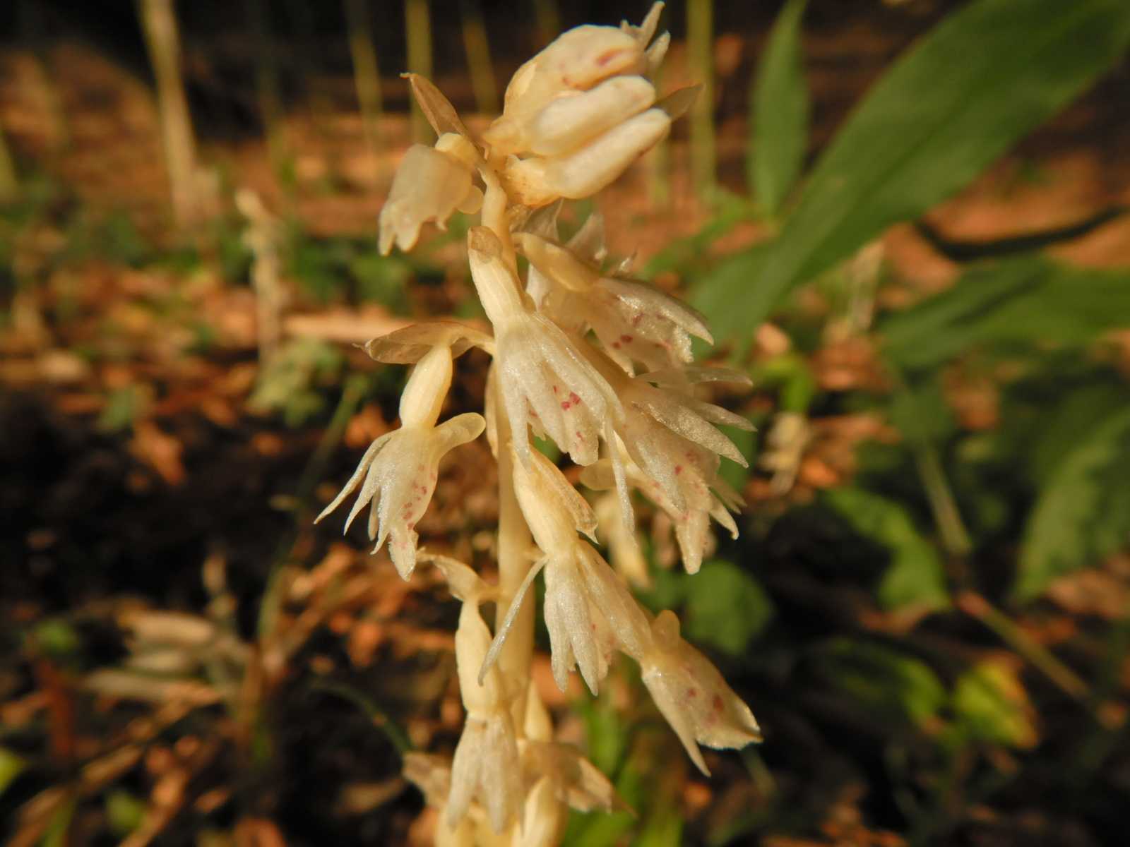 葉緑素が無く光合成をしない腐生植物だそうです。