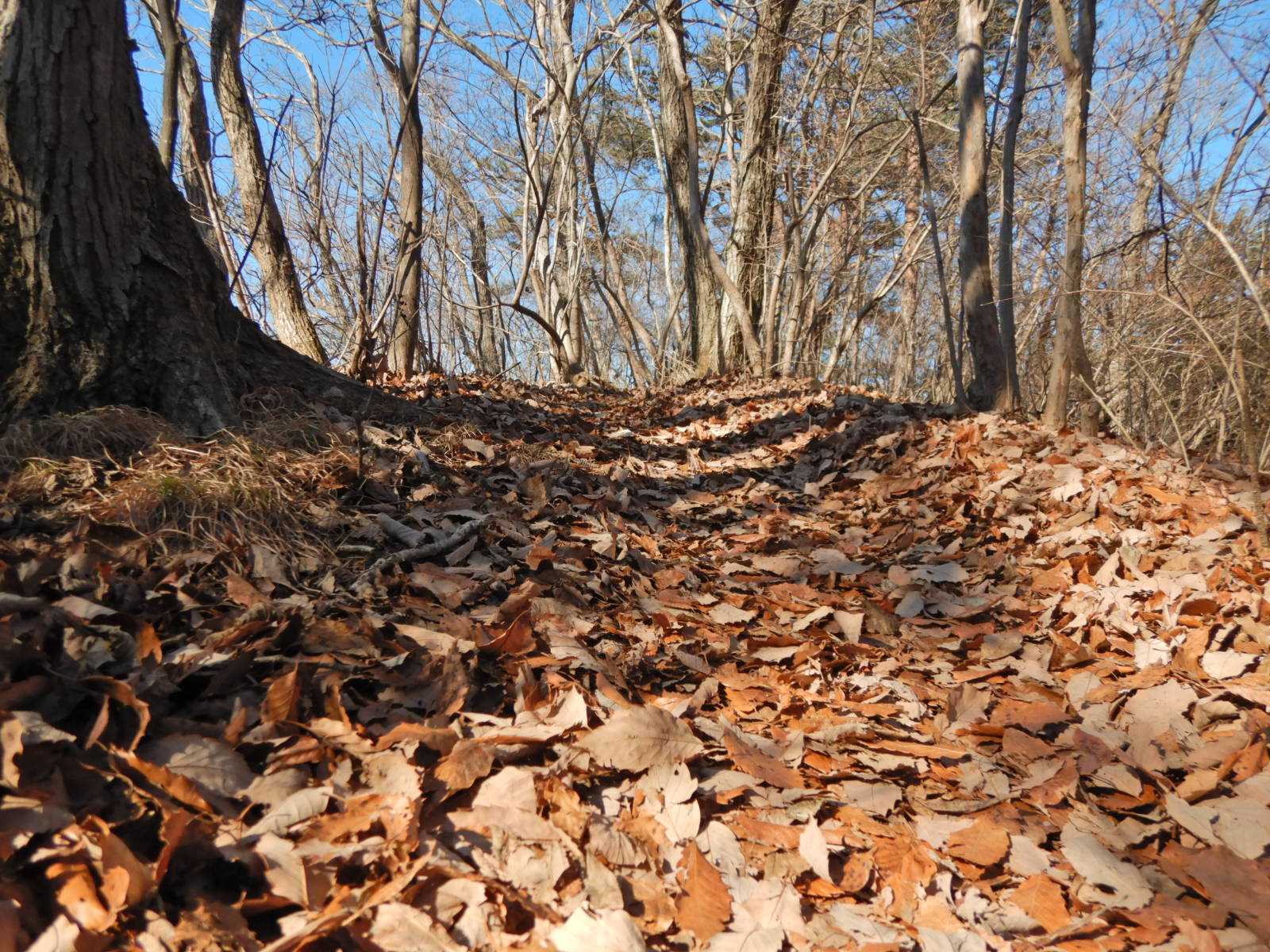 冬の低山らしい道でも落ち葉が滑るので気の緩みは禁物です。