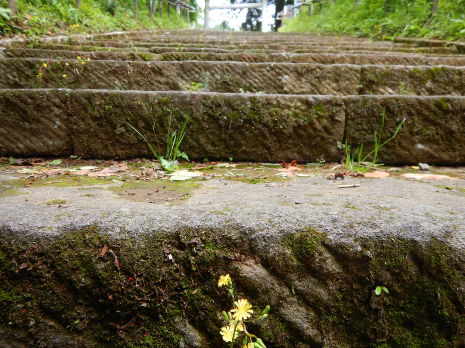 石段の隙間のあちらこちらにはオニタビラコが咲いていました。