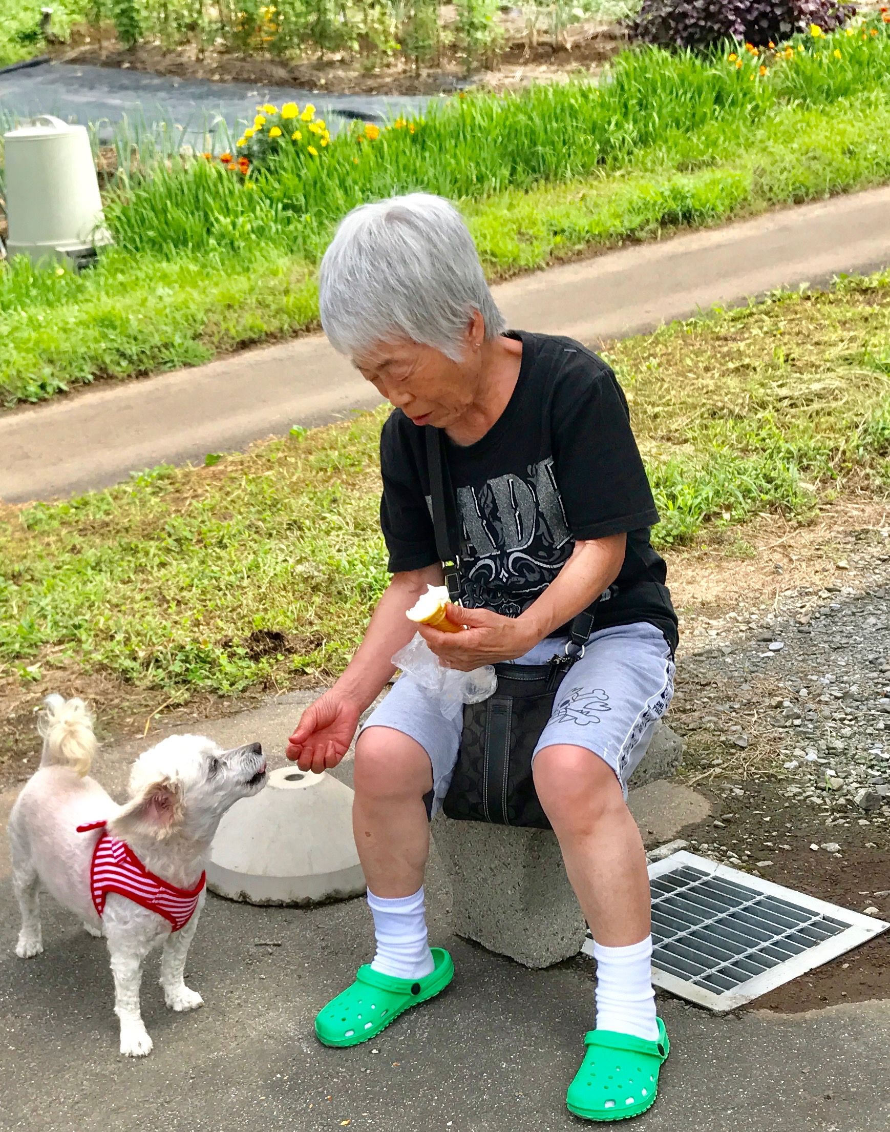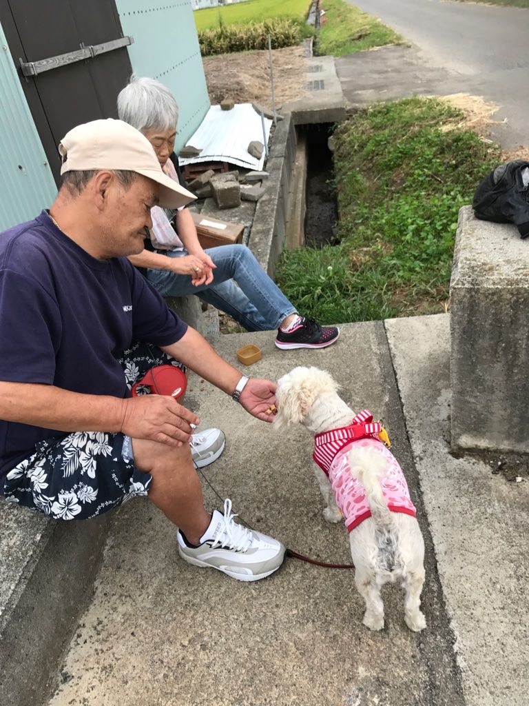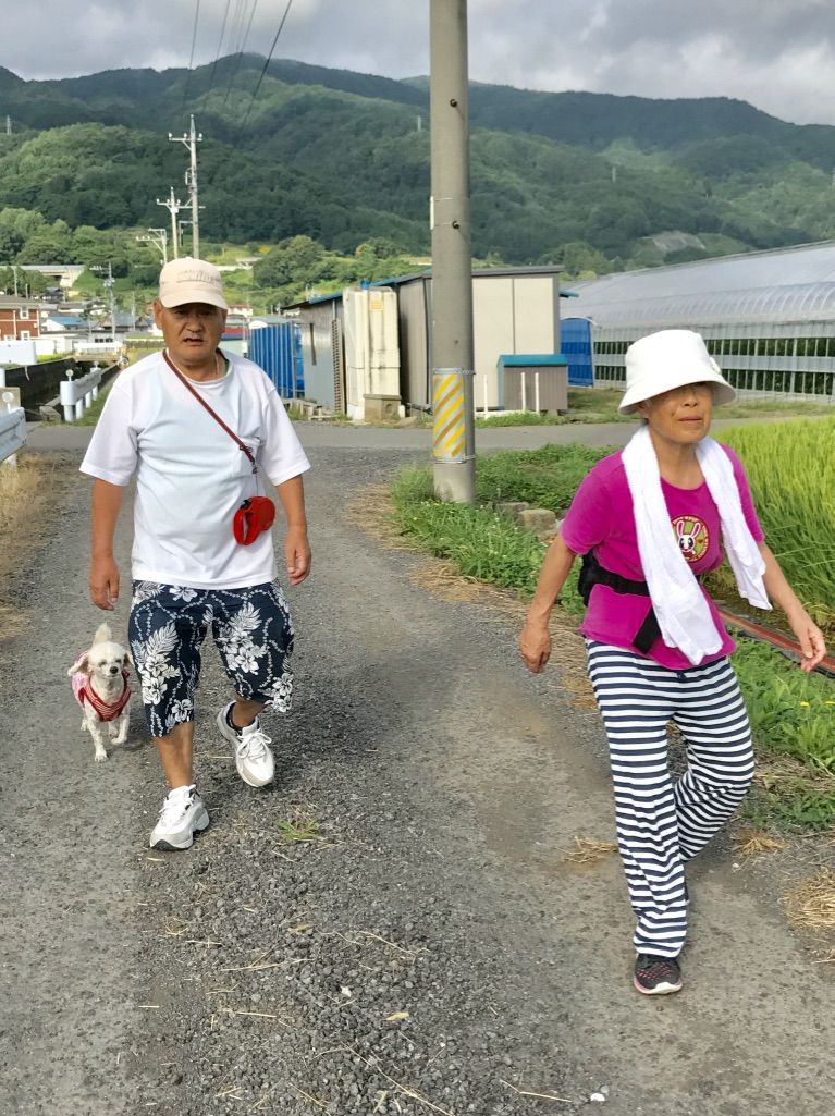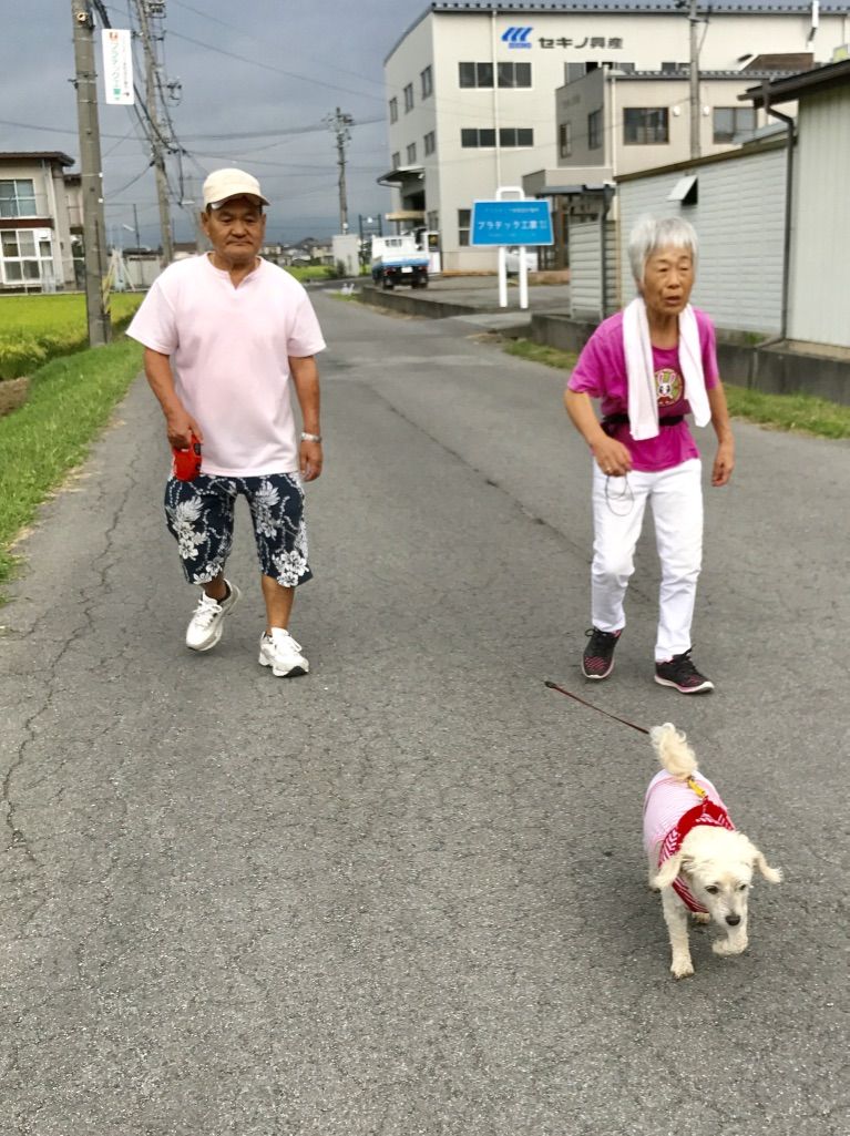 おはようございます。昨日から、外泊で家にいるので、朝のお散歩してきました。天気は、曇りですが、暑いです。みんな一生懸命歩いています。