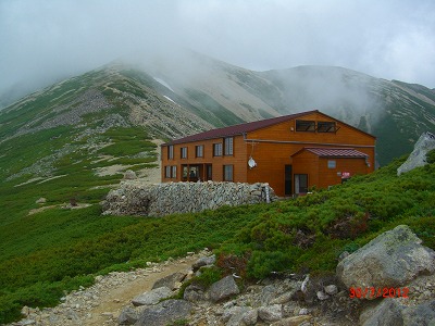 数年前大雨前線の仕業で途中の太郎平小屋から引き返して中途半端で終わっていた薬師岳リベンジです。折立で前夜車中泊翌朝6時登山口出発お日様が少々ご機嫌斜めか高度を上げても見えるはずの剣も槍も姿を見せません。弱いハートを悩ませながら ゆっくりと休憩をしつつ 当日の最終目的地薬師岳山荘へ到着2年前に立て替えられた小屋でほとんど男性陣に囲まれて標高2700メートルの一夜を過ごすと 出番とばかり今日のお日様のご機嫌はすごぶる良さそう。50分かけて薬師如来の祭られる頂上制覇ヤッター! 360度の遠景に満足これで薬師岳に丸が付けられます。誇らしげに天に突き刺す槍の雄姿をを見たのは2年振りあんな 心・筋の通った男に産まれたかったな~などと山の魅力に浸っていられるのも僅か!すぐに下界人に戻らなくてはならない!何しろ貧乏暇なしの身なのですから~前日と違い 剣がずっと私を見守ってくれるかの如くの日本晴れに下りも暑い!登りは雲がでていた昨日で良かった~帰路立ち寄ったお風呂でやっと携帯の電源を入れると 「産まれました。母子共に健康です」婿殿のメールが入っています。眠剤を飲み 車中で眠り込んでいた時間に末っ子の第2子である長男 私の6人目の孫がこの世に送り出されていたのです。思えば3年前 第一子長女が産まれた時も私は赤岳に向かって歩いていた時でした。その時は2週間も早かったのに今回は予定日を過ぎてものんびりしています。「お母さんが山へ行くときっと産まれるよ」その通りでした。いずれその子達が大きくなり 家の孫達家族みんなで 歳を取った私の手を引っ張り山へ連れて行ってくれる日を夢見ています。