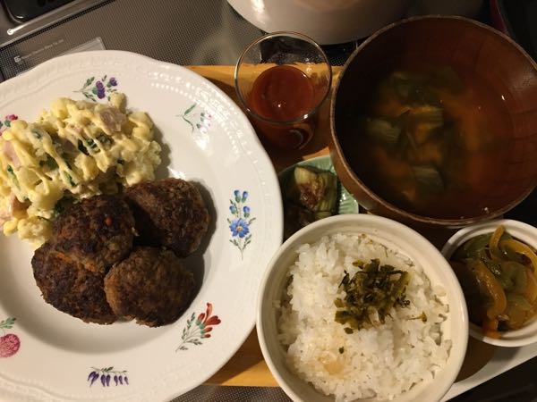 おこんばんは。 一昨日位から、左の肩が痛くて痛くて… 首もなかなか周りにくく😢 ストレッチなどしてみるものの、良くならず😢 今夜はお風呂でゆっくり、暖めてみよう。 さて。晩御飯⭐︎ コロコロコロッケ、衣付けた時点で自分を褒めてあげました😅なはは その他は残り物どえす。 さ、風呂沸かすべ。 そうそ。今日は陸のお迎え、早く着きすぎたけど 無事みんなで帰れました〜✨ でも、ま、必要ないわな(笑) 荷物持たないしチャリ乗るし そんな楽はいかん! 今日は特別〜✨