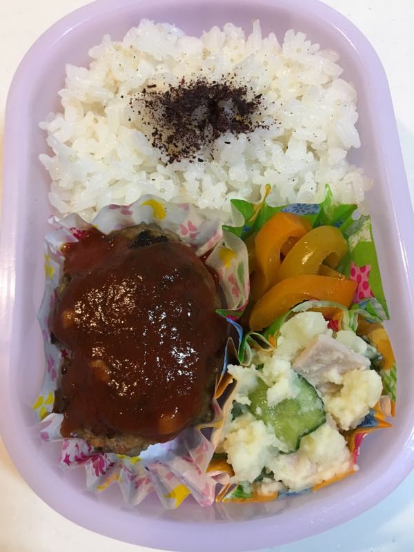 おはようございます🌞 暑くなる予報ですね😄 早速、お弁当♬ 昨日は夕飯を作り片付けそのまま弁当の仕込み💦 ハンバーグは焼くまで終わらせて蓋しておいて 今朝は再度加熱し、 ソースを作りかける。 ポテサラはマヨまで終わらせ、 朝は塩とマヨを足して混ぜる。 昨日頑張っておくと、朝が楽ですね💖 デザートはうさりん。🍎 昨日は母の日で 素敵なお花を貰いました😍✨ 玲チョイス。 陸が選ぶ花と、また違うので そんなのも楽しい♬ カーネーションを嗅いで 『くさっ!』 バラを嗅いで 『ふ〜ん❤︎いい匂〜い❤︎』 と、明確な違いを見せつけてくれました(笑) 花があるっていいなぁ✨✨