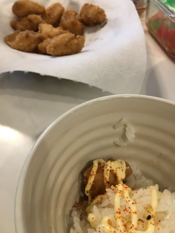 こんばんは〜 まだまだ喋り方がおかしい口内炎ウィーク。 風、強過ぎ💢ほんっとに💦 さ。夜ご飯♬ これは夫の分、ないな。と思い、撮っときました(笑) 鶏胸肉の竜田揚げ。もうマヨと七味と合い過ぎるぅ〜 残りは全て、玲さんの胃の中へ😅 で、玲さん以外は豚丼✨ (マヨ×七味は大人だけ) これがまぁ牛丼でもないのに、 陸、まさかのお気に入りに💖😆 お値段(牛さんと比べて)全然違うんで うれぴー 怖い夢の入り口みたいに見えるのは味噌汁。 豆腐とワカメなり。 明日は、急遽学校へ行って、担任の先生と 親睦会の打ち合わせ💦 月一の土曜授業の日なんで、陸だけ学校の予定だったんだけど、私もになりましたー😅