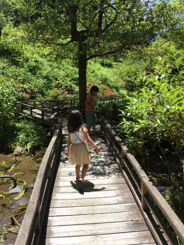 暑い。。。 私が子供の頃から 半年か、一年に一度程度の間隔で 祖父母と両親と食べに来ていた 高尾山口にある、うかい鳥山へ 今日は私の両親と 本当に久しぶりに食事に来ました⭐︎ 両親より、少し先に行って、お散歩しながら待ち合わせ時間まで楽しみます。 オニヤンマやギンヤンマもいて。 昼も夜も、そして全ての季節で、 違った風景が見られるので いつ行っても良いなぁ✨ お部屋まで。 飲み物からスタートして 大人の方も少しずつ食べ物が出始めて 子供にもオードブル。 ↑これは玲の嫌いな卵焼きをパパにあげるところ(笑) じゃがバターも唐揚げも、とにかく大きい! 大人でもオードブルでお腹いっぱいになりそう😅 でもまぁ陸も玲も良く食べた! 炭火が入り、焼き始めた途端 煙が蔓延し始め… え?換気扇付いてるの??って程のモクモクレベル💦💦 あまりにも凄くて、目が痛くなって来て こんな事、今までで初めてだね〜なんて言いながら、窓を開け 暑くて煙くて、火が強い‼️ 焦げて行くのも早くて😂 でも、やはりウリなだけあって、鶏肉は美味しかったな。 茗荷と甘味噌が入った油揚げも美味しかった♬ …でも、焦げてる所が苦かった😂 そして締めのとろろご飯がきつかったぁ😅 お腹パンパン過ぎです。 帰りもまだ暑かったけど 楽しい食事となりました✨✨ 帰りにフロントの奥にあるお土産のけん玉が 欲しくて欲しくて ひともめ…いや、大分もめましたけど😓 帰りは全員爆睡で、結局タクって帰りましたけど それも全部、良い思い出になるかな。