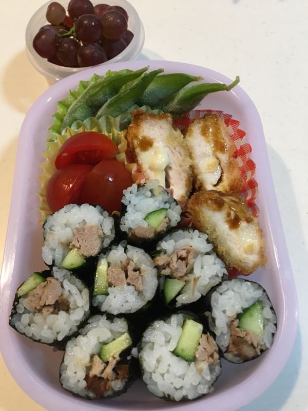 おはようございます。。 昨夜は、夜中と明け方と、何度か 陸の足つった→揉んで コース。 眠くて勘弁してくれ。と若干キレながら揉み… 朝は早朝から弁当作りました😅 なんつー下手っぴな細巻き😂 胡瓜と冷凍ストックしておいた焼豚の細巻き♬ 朝からチーズがやはり跳ねたササミのチーズカツ🧀 今日はいよいよプールだね‼️ でも、陸はそんなワケで、元気だったけど寝不足。 玲は鼻水くしゃみがとまらず、 何だかアレルギーっぽいここ数日。熱はないのだけど辛そうで可哀想😢 しかしプールは入る気満々💦 そんな一日の始まりです⭐︎
