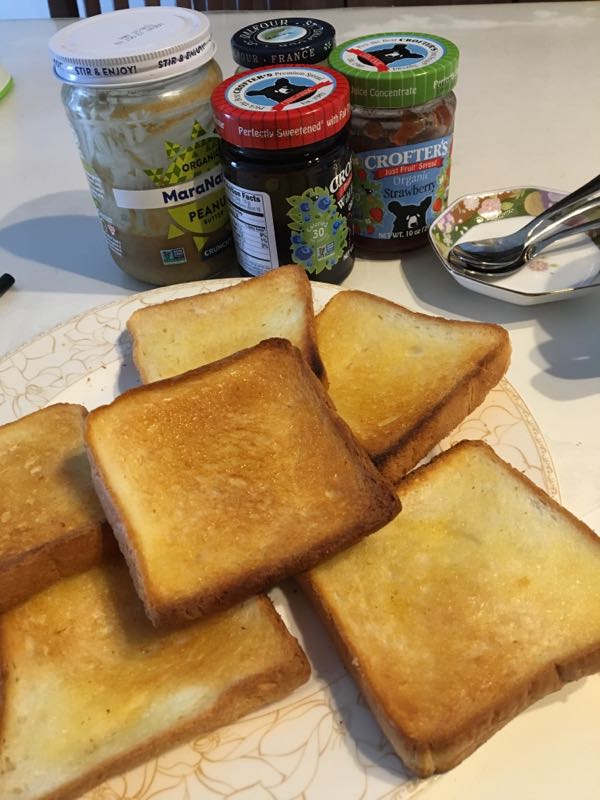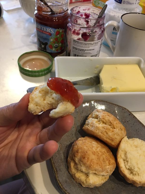 おはようございます。 本日、貴重な晴れ間の様で すでに洗濯物回っております💦 昨日は安定の(?)回転寿司→買い物、ゲーム… 帰宅後、公園へ行ったり… 夜ご飯は写真すら浮かばず😵 牛丼やら残り物おかずでございした🍚 今日は午後から、ばーば(私の母)が歌を歌うので 聞きに行く予定です♬ それまで色々終わらせるぞっ! 朝ごパン 温め直したスコーンにも、ココアレーズンパンにも バターと苺ジャムをたっぷり⭐︎ 朝から肥えようとしてますね。