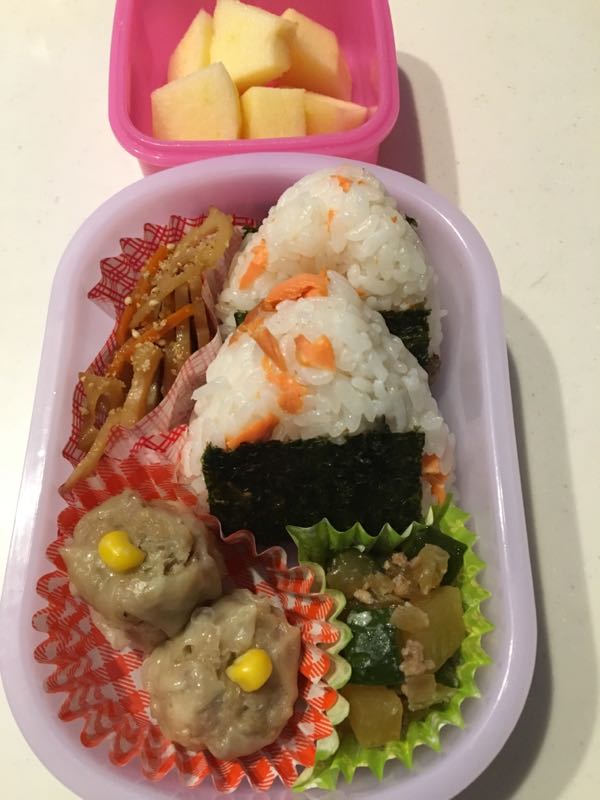 隙間が気になる今日のお弁当でっす😅 今週は保育参観。 木曜日以外は9時から11時半過ぎまで 出入り自由で子供達を見て楽しめます✨ 今日はプールだったので 友達と喋りながらずっと見ていて 可愛い😍😍 梅雨、明けたの?(笑) 本当はステテコ買いに行きたかったんだけど、 ちょっとムリそうなので、やはり明日かなぁ〜 明日は玲を送ってそのまま 子供達(年少さんから年長さんまで) に、絵本の読み聞かせをする(今年最初の) 一回目です♬